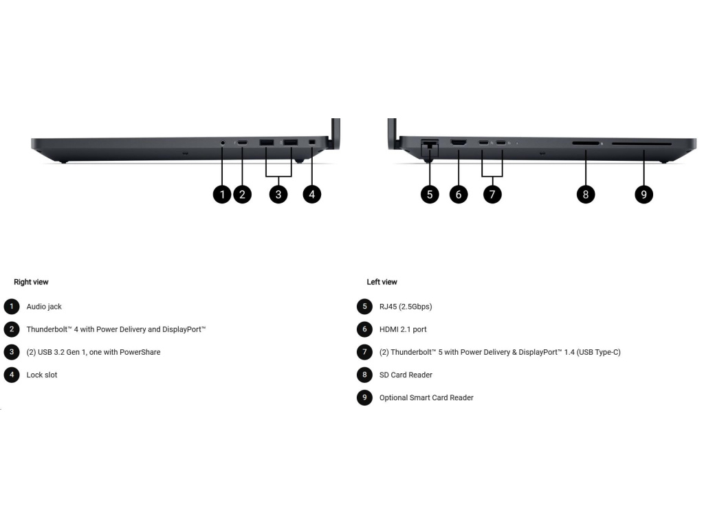 | 6 cell, 96Whr, ExpressCharge™ Capable, standard battery, 280W AC adapter, USB Type C |