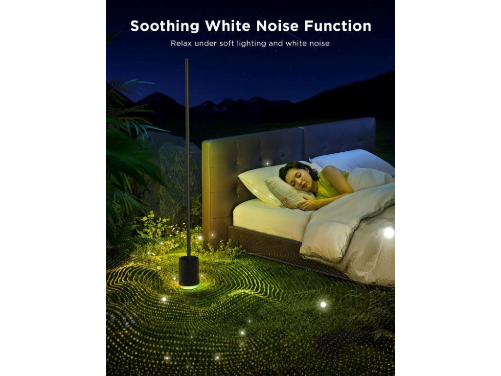 Floor Lamp 2 je vybavena BT 5.3 reproduktorem s efektovou jednotkou. Použít ho můžete jako reproduktor k telefonu, TV nebo jako generátor bílého šumu.