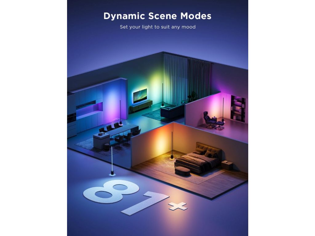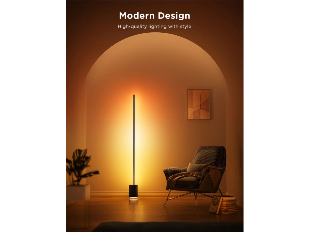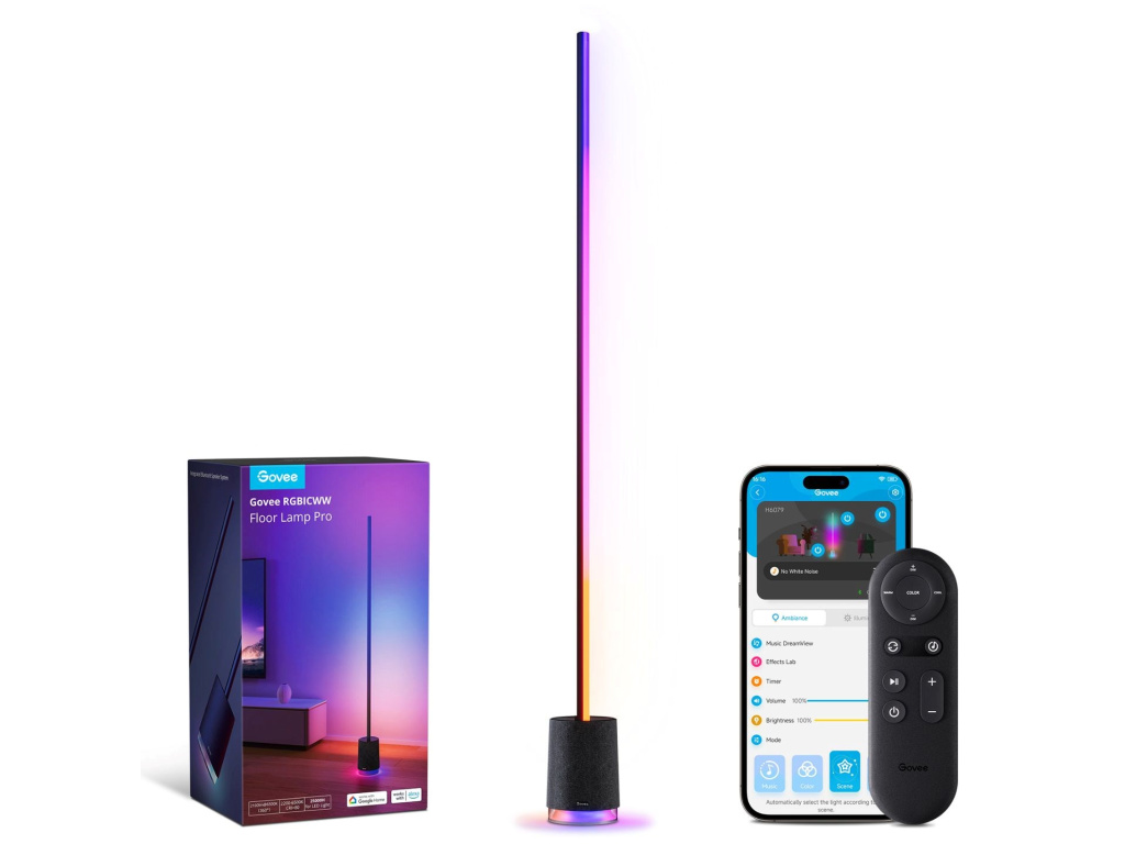 Govee Floor Lamp Pro vychází z modelu Lyra. Je to minimalistická, moderní podlahová lampa s BT reproduktorem, která poskytne dokonalou podívanou a perfektní zvukový zážitek. Lampa nabízí velmi slušných 2100 lumenů. Díky 324 diodám s technologií 4 v 1 RGBICWW, které lze rozdělit až na 54 nezávisle programovatelných segmentů dokáže lampa předvádět efektní podívanou jako perfektní barevné přechody, složité barevné vizualizace a skvělý jas a kontrast. dosahuje světlo ohromující intenzity. K dispozici je přes 16 milionů barev nebo bílá laditelná od 2200 do 6500 K. Floor Lamp Pro je také vybavena BT reproduktorem, takže k ní můžete připojit svůj telefon nebo TV a využít ji k přehrávání hudby nebo filmů. Dodatečně je lampa vybavena 29 presety bílého šumu, který vám pomůže se soustředěním, relaxací nebo usnutím. S funkcí DreamView můžete lampu synchronizovat s dalšími Govee světly a jedním stiskem tak tvořit atmosféru pro každou příležitost. Lampa měří 172 cm, ale zabírá minimální prostor a lze ji tak umístit doslova kamkoliv. Nejvíce jí to však sluší v rohu nebo u zdi, kde osvítí maximální prostor za sebou a vykouzlí na vaše zdi úžasně plynulé barevné přechody. Životnost lampy je u Govee standardních 25.000 hodin. Ovládání je možné aplikací Govee Home, Google Home, pomocí asistentů Google, Apple i Amazon. Pro maximální pohodlí v balení naleznete i klasický dálkový ovladač, který je kdykoliv v pohotovosti, připnutý přímo k lampě. Samozřejmostí jsou přednastavené scény, kterých je zde 81, několik režimů synchronizace s hudbou a pokud si ani tak nevyberete, čeká na vás DIY režim, který vám dá 100% kontrolu při které je jediný limit vaše fantazie.