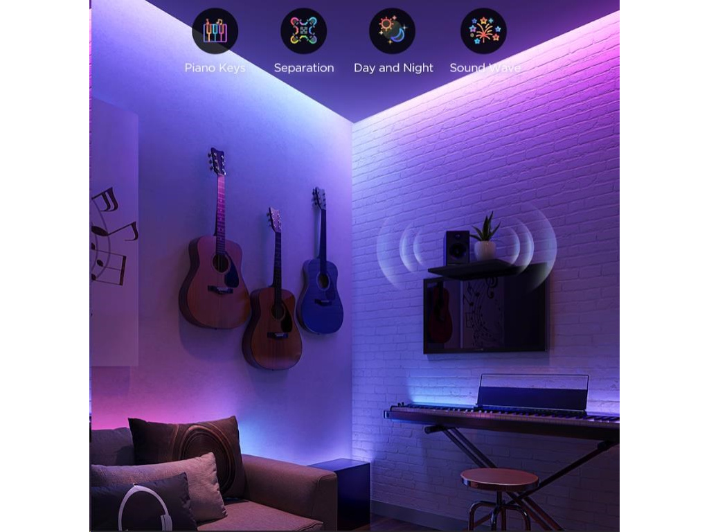 Světla mají integrovaný mikrofon, díky kterému se světlo umí synchronizovat s hudbou a rytmikou a vytvoří tak neopakovatelnou atmosféru na večírku, oslavě, při sledování filmu nebo během relaxace s poslechem oblíbené hudby.