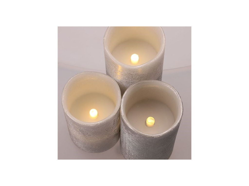 - sada LED svíček z vosku s přirozeně blikajícím plamenem ve stříbrné barvě