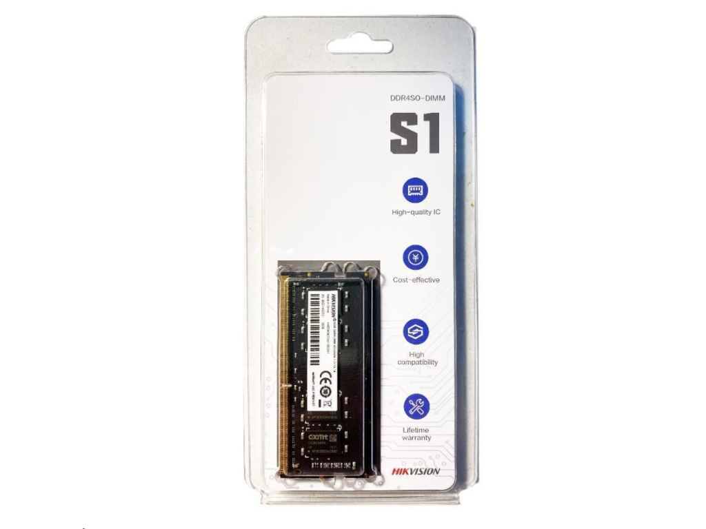 Hikvision memory moudule S1 is a DDR4 memory,which is manufactured by using original high-quality granules and mature production technology to make it more compatible, work stable and cos-etffective. It can be widely used in notebook computer installation.