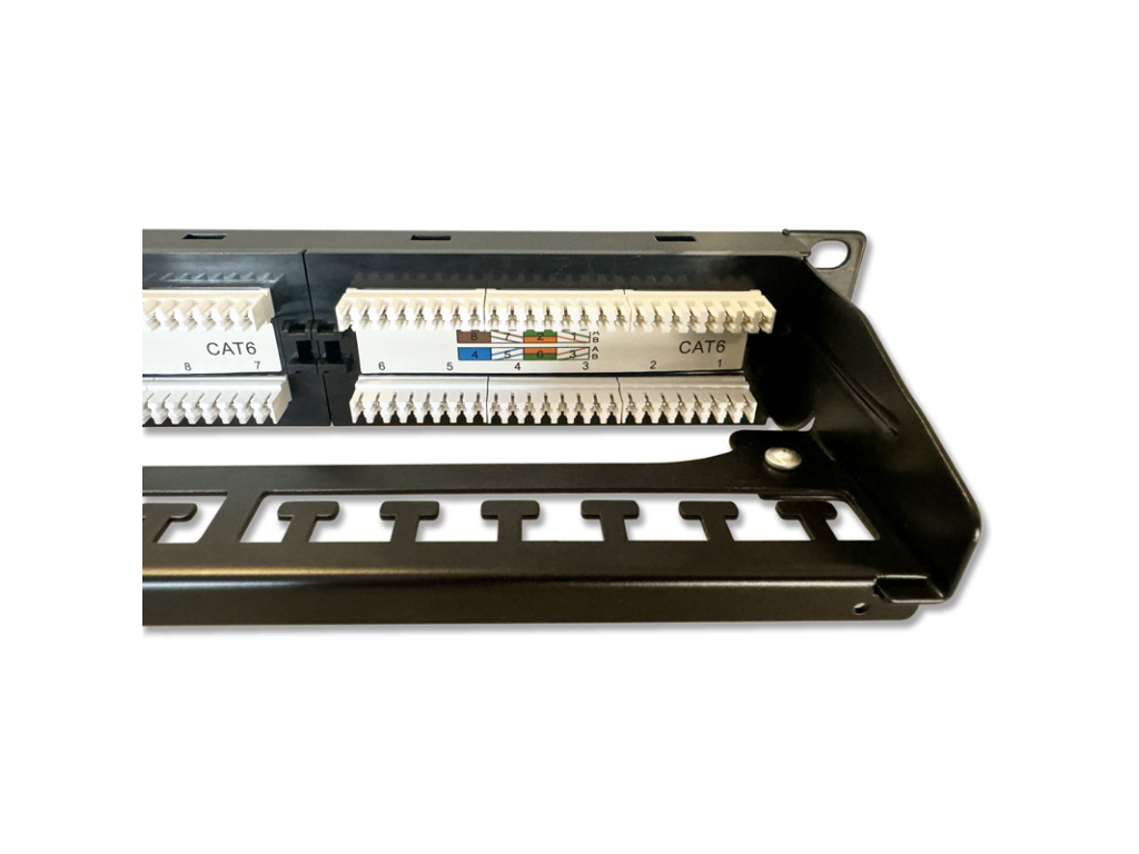 Hlavní vlastnosti: - 24 portů CAT6 pro rychlý a stabilní přenos dat - Kompatibilita s protokoly: Patch panel je plně kompatibilní se síťovými protokoly, včetně 10BASE-T, 100BASE-TX (Fast Ethernet) a 1000BASE-T (Gigabit Ethernet). - UTP (Unshielded Twisted Pair) nestíněné provedení - zářezové pole typu DUAL (LSA i 110) na 4 polích po 6 portech (4x6p) - Kompatibilní s montáží do 19'' racku - Výška 1U, ideální pro prostorově úsporné aplikace - Vyvazovací lišta (VL) součástí pro snadnější organizaci kabelů - Barva: Černá (BK) Patch panel je ideální volbou pro firemní sítě, datová centra či menší strukturované kabeláže.