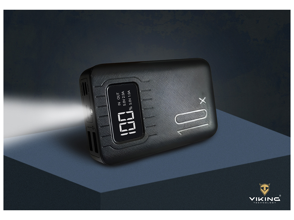 Viking go10 10000mAh Viking go10 je praktická a spolehlivá powerbanka, která kombinuje kapacitu 10000mAh (37Wh), rychlé nabíjení a moderní design. Díky svým kompaktním rozměrům ji snadno schováte do kapsy nebo tašky a budete mít energii k dispozici kdykoli a kdekoli – ať už na cestách, při sportu nebo v práci. Digitální LED displej vám okamžitě ukáže zbývající kapacitu powerbanky, takže máte vždy přehled o stavu nabití. Integrovaná LED svítilna se hodí pro orientaci ve tmě nebo při nouzových situacích.