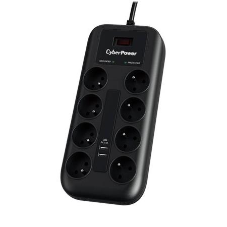 CyberPower přepěťová ochrana, 8 českých zásuvek, 2x USB, P0820SUF0-FR