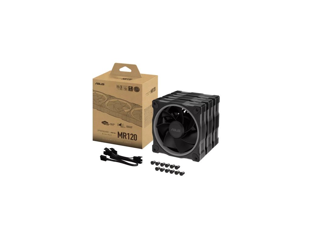 ASUS PRIME MR120 - FAN ARGB, černá 3v1 ASUS Prime MR120 ARGB Fan s oboustranným osvětlením rámu a tloušťkou 28 mm poskytuje ideální chladicí výkon.