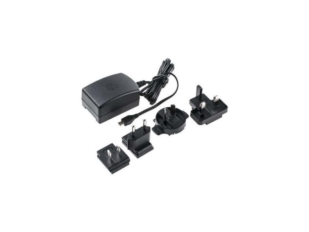 Oficiální 5,1V/2,5A micro USB zdroj pro Raspberry Pi s výměnnou vidlicí pro EU a UK.