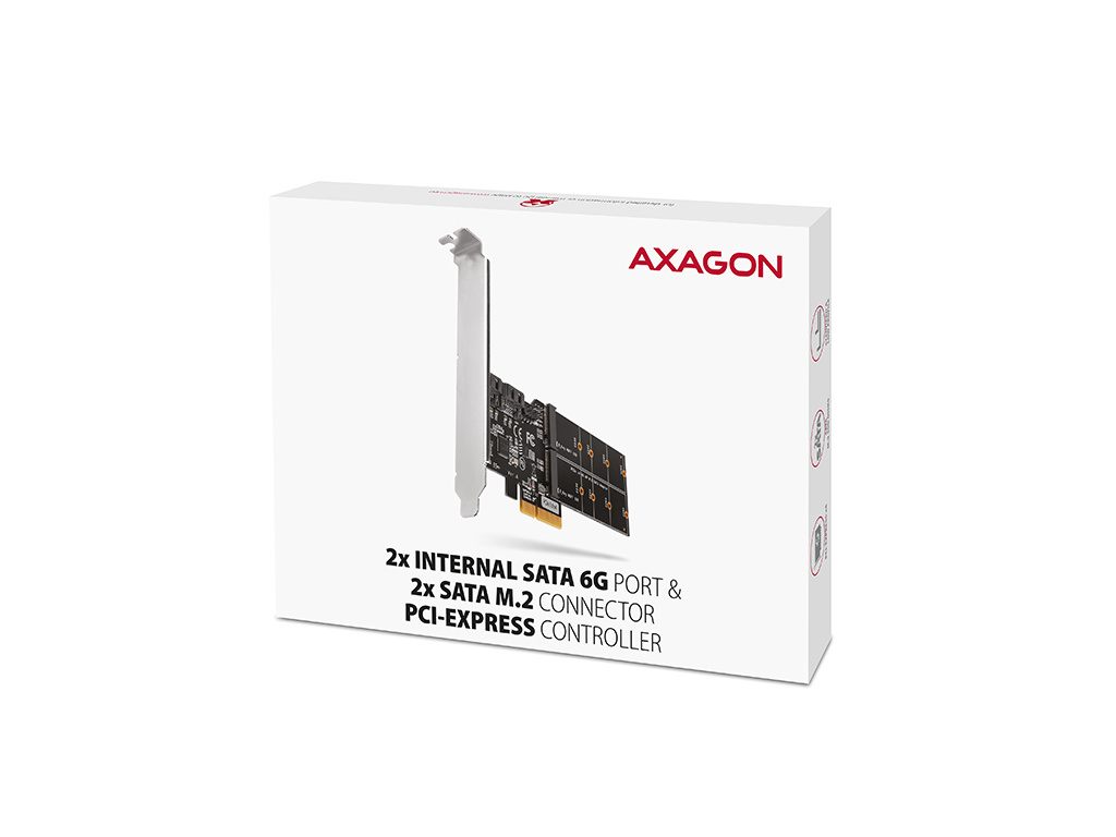 AXAGON PCES-SA4M2, PCIe řadič - 2x interní SATA 6G port + 2x SATA M.2 slot, ASM1164, SP & LP, PCES-SA4M2