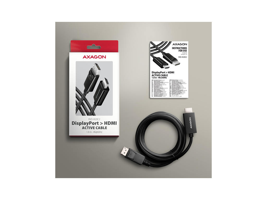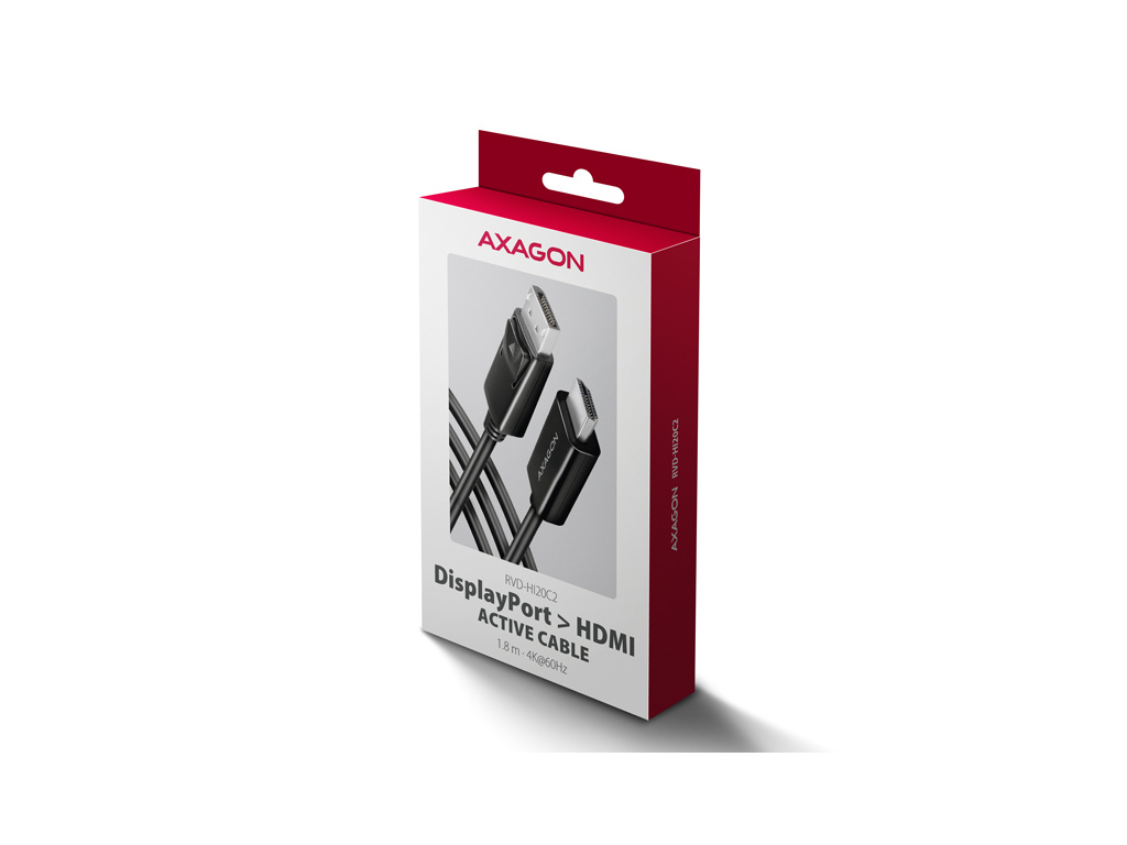 AXAGON RVD-HI20C2, DisplayPort -> HDMI 2.0b redukce / kabel 1.8m, 4K/60Hz, RVD-HI20C2