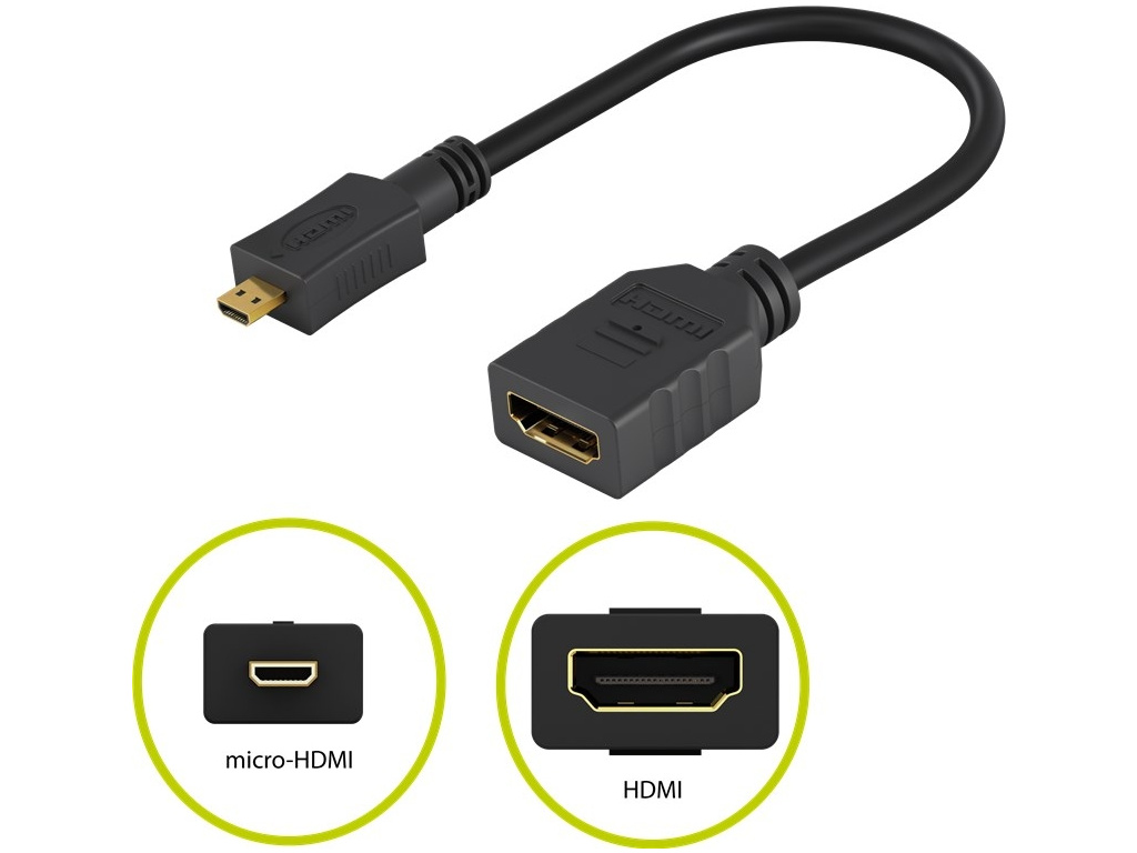 Adaptér slouží k pružnému a ohebnému zapojení do zařízení s micro HDMI konektorem