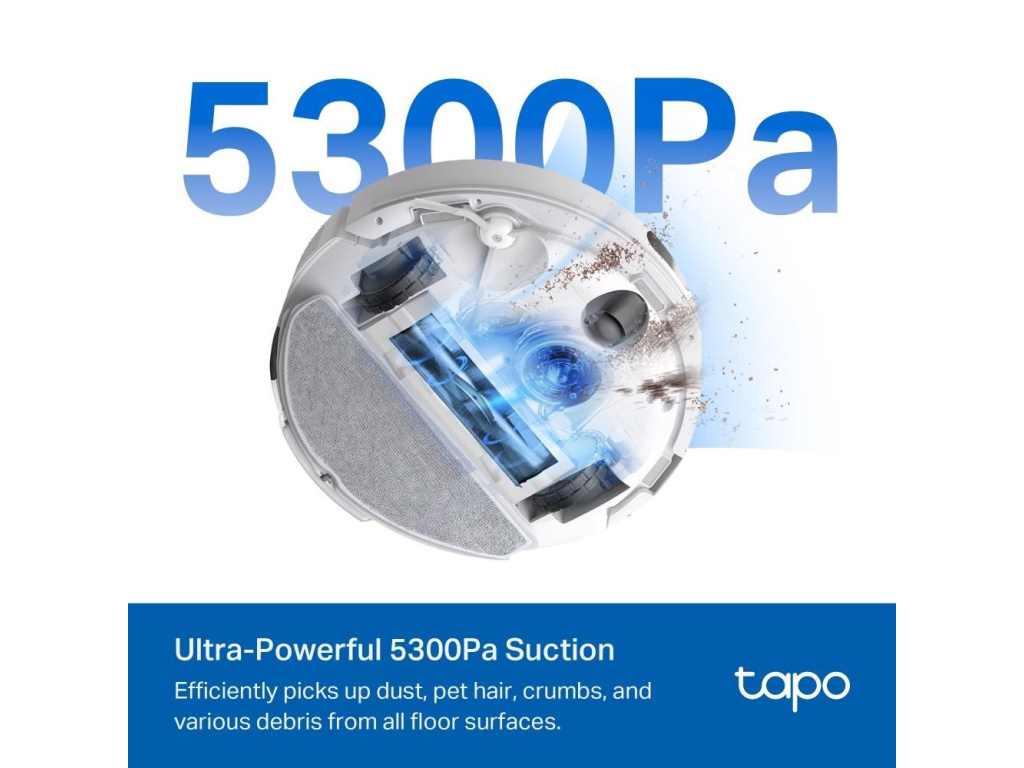 - Mimořádně výkonné sání 5300 Pa - robot účinně sbírá prach, zvířecí chlupy, drobky a různé nečistoty ze všech povrchů podlah a zanechává váš domov bez poskvrnky.