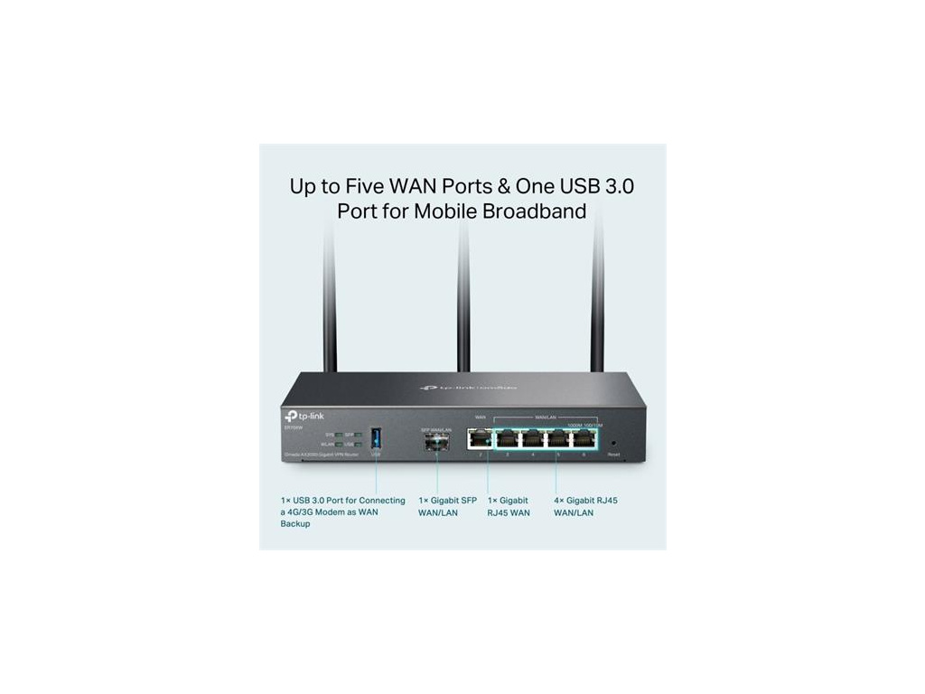 TP-Link ER706W - AX3000 Router VPN WiFi 6, 1x GWAN + 4x GWAN/LAN + 1x GWAN/LAN SFP, USB, Omada SDN, ER706W