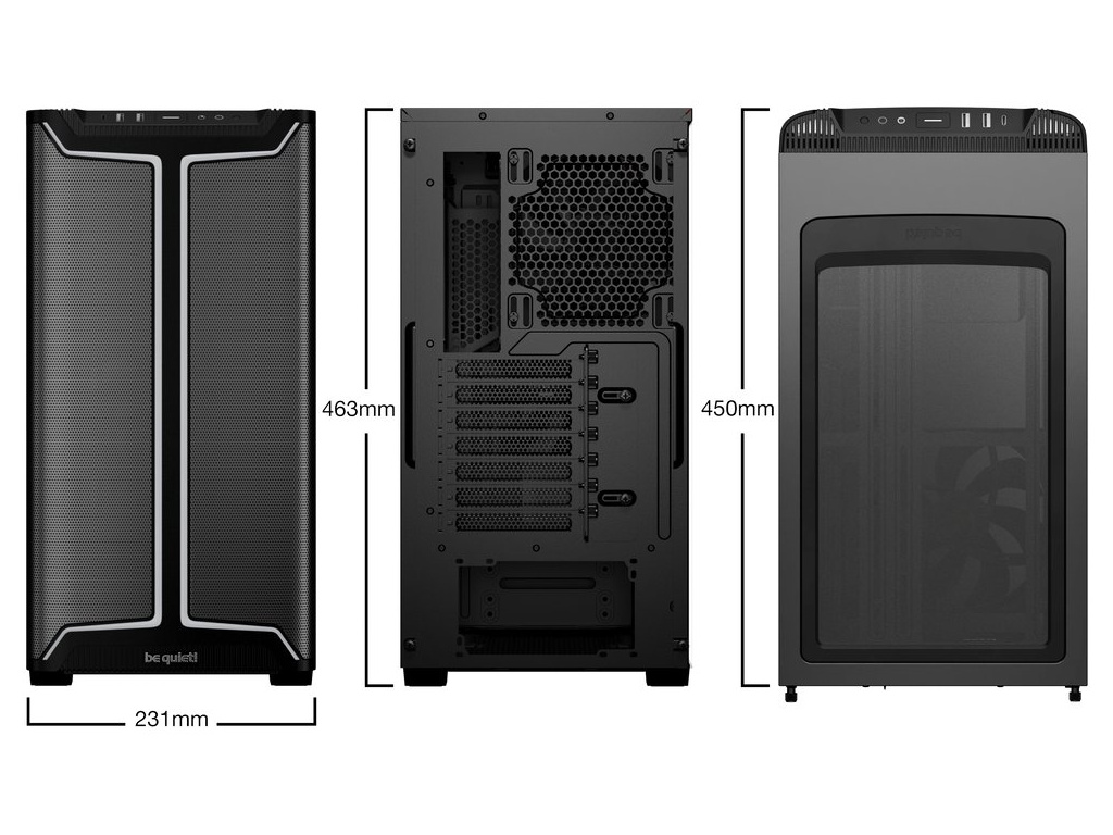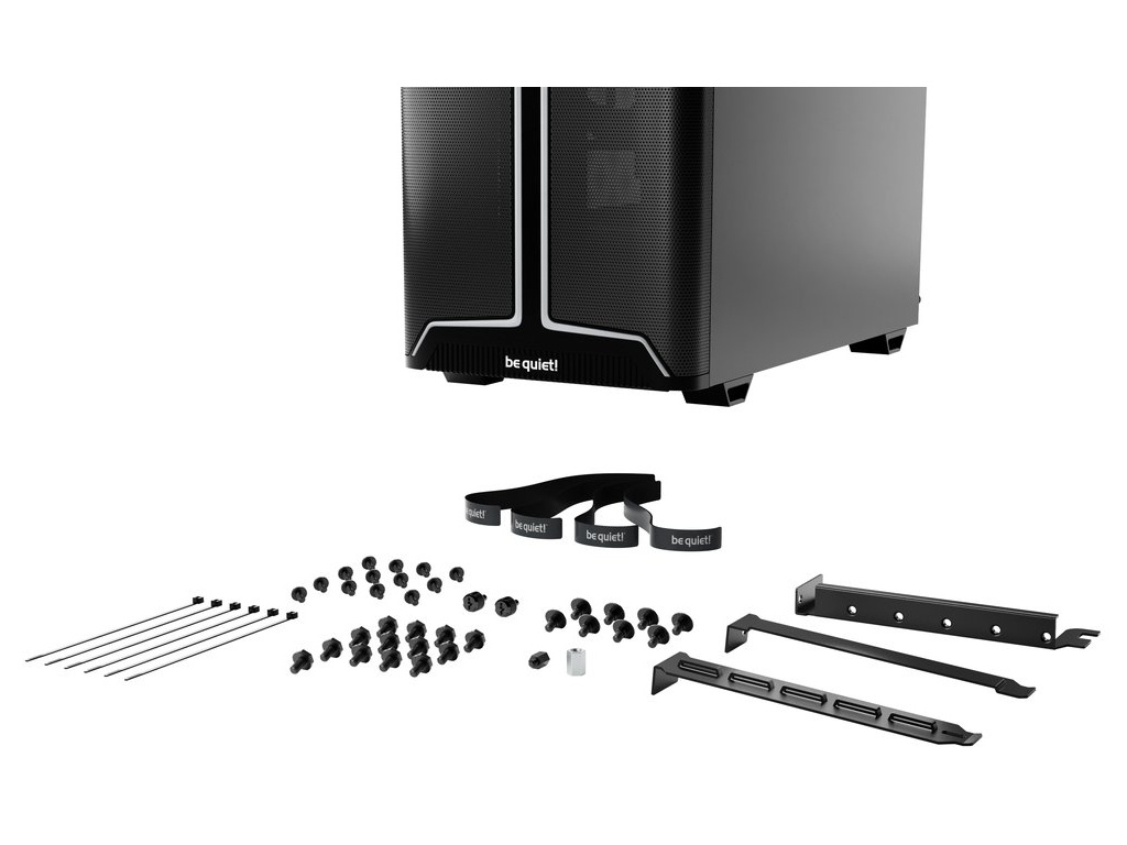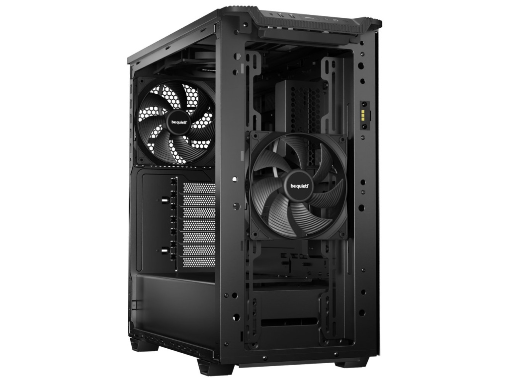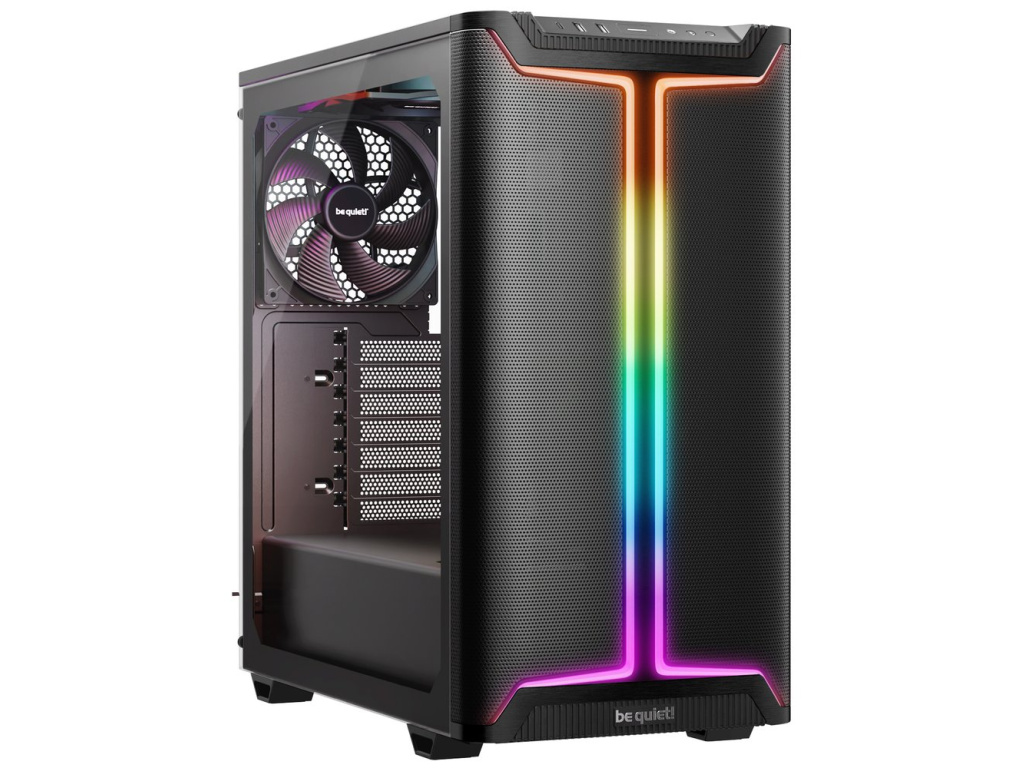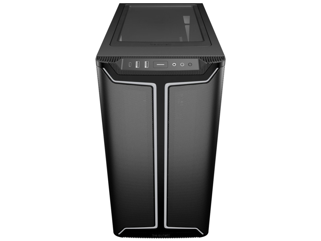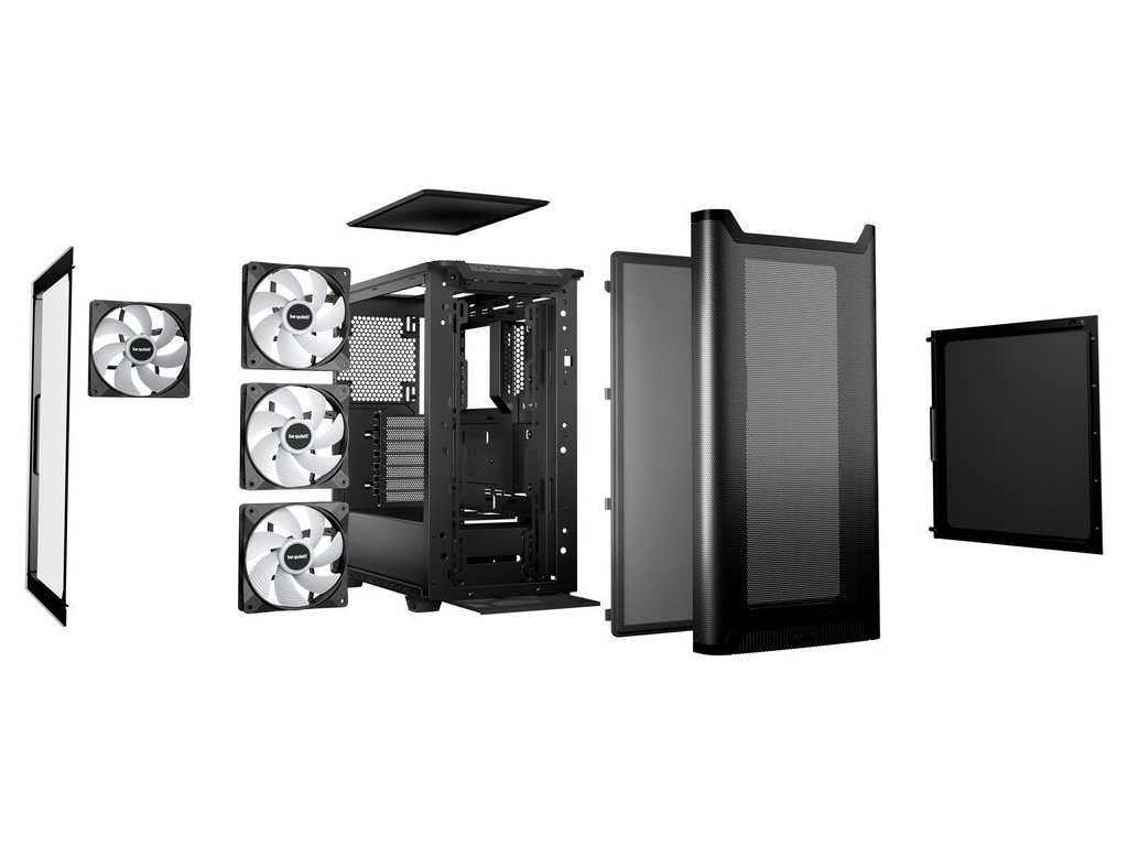 Be quiet! PURE BASE 501DXSkříň s průhlednou bočnicí a ARGB LED osvětlením nabízí dvě 3,5" pozice pro pevné disky a pět 2,5" pozic pro SSD disky. Na horním panelu naleznete dva porty USB 3.0, jeden port USB-C a dále také konektor pro sluchátka a konektor pro mikrofon. Skříň je osazena třemi ventilátory Pure Wings 3 o velikosti 140 mm. Důmyslné řešení umožňuje pohodlné umístění až 360 mm dlouhého výměníku vodního chlazení na přední straně. Ve skříni je dostatek prostoru pro chladič CPU do výšky až 190 mm a grafickou kartu o délce až 369 mm. Skříň je dodávána bez zdroje. Potěší také přítomnost odnímatelných prachových filtrů.