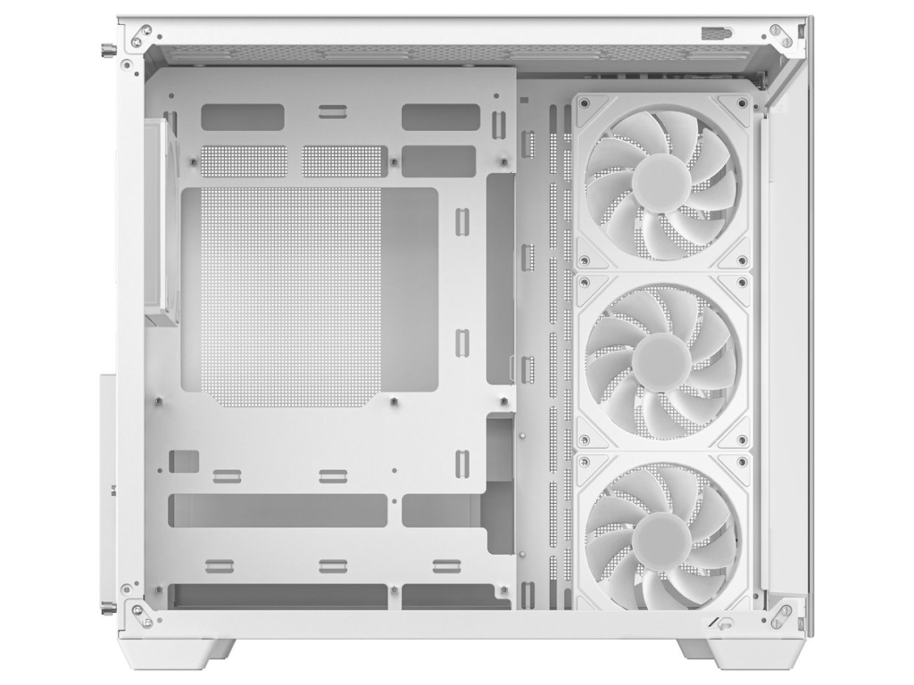 DEEPCOOL CG530 4F bíláSkříň formátu Middle Tower s průhlednou bočnicí a průhledným předním panelem nabízí tři 2,5" pozice pro SSD disky a dvě 3,5" pozice pro pevné disky. Na horním panelu se nachází dva USB 3.0 porty, jeden USB-C port a kombinovaný port sluchátek a mikrofonu. Skříň je osazena čtyřmi 120mm PWM ventilátory s ARGB podsvícením. Důmyslné řešení umožňuje pohodlné umístění až 360 mm dlouhého výměníku vodního chlazení na vrchní či spodní straně. Ve skříni je dostatek prostoru pro chladič CPU do výšky až 160 mm a grafickou kartu o délce 410 mm. Dodávána je bez zdroje. Díky široké konstrukci s důmyslným dvoukomorovým uspořádáním zajišťuje tato skříň vynikající kompatibilitu a optimální proudění vzduchu. Součástí je také sada prachových filtrů.