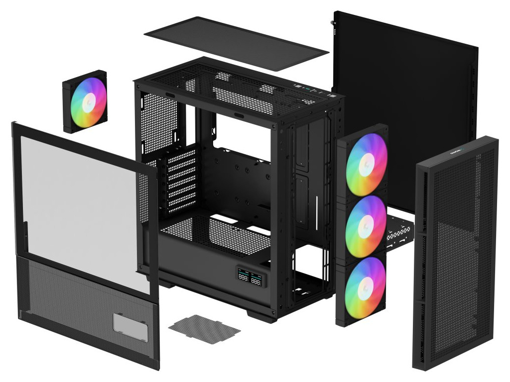 DEEPCOOL skříň CH560 Digital / MidT/ 3x140 a 120mm ARGB fan / USB 3.0 / USB-C/ tvrzené sklo / digitální displej / černá, R-CH560-BKAPE4D-G-1