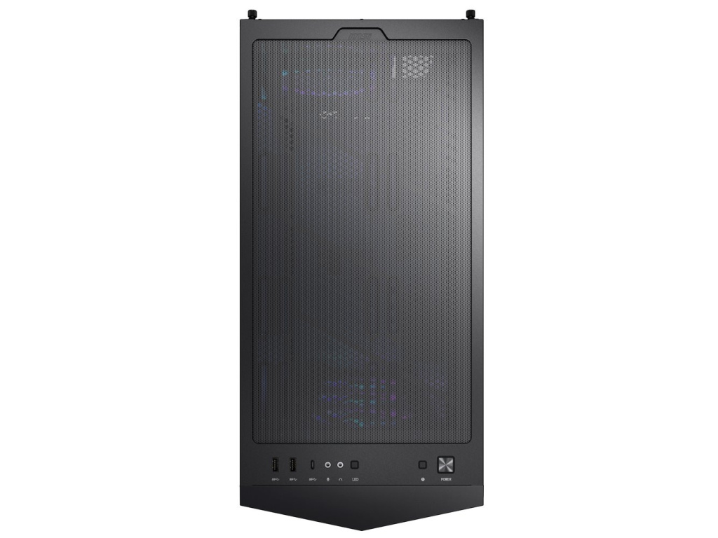 Konektory na horním panelu: 1× USB-C 3.2 Gen2×2, 2× USB 3.2 Gen1 (USB 3.0), 1× výstup pro sluchátka, 1× vstup mikrofonu
