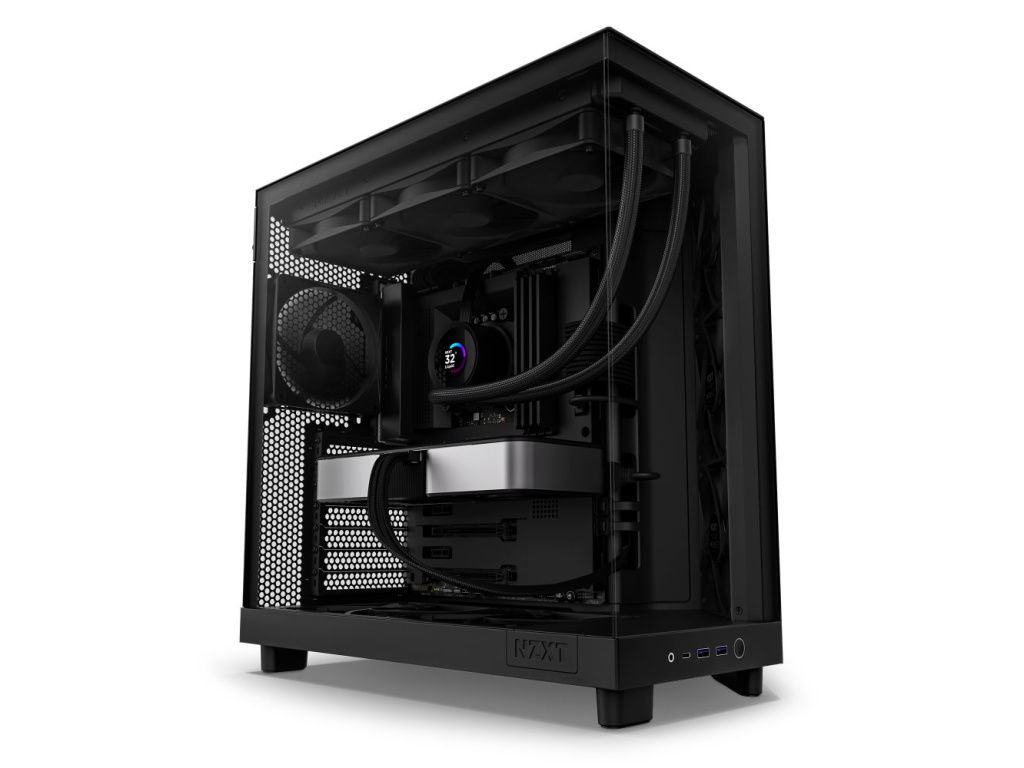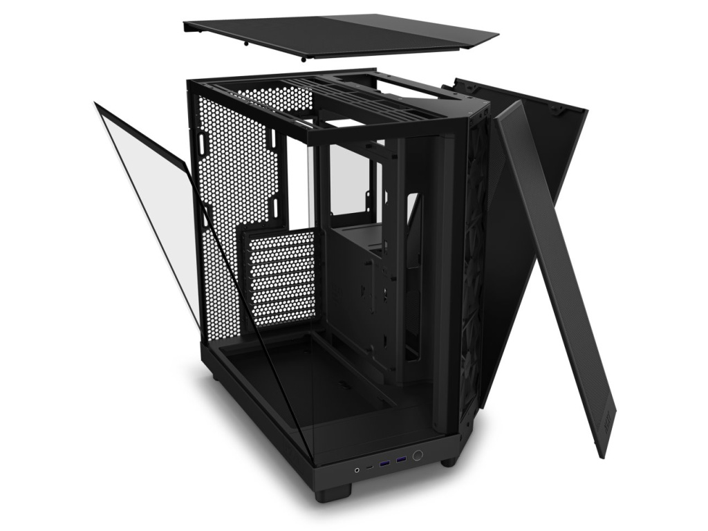 NZXT H6 FlowElegantní počítačová skříň nabízí stylovou prosklenou bočnici a čelo, perforovaný panel a prvotřídní kovovou konstrukci. Osazení komponentami je lehké díky systému správy kabeláže, kabely tedy nikde zbytečně nepřekáží. Skříň je osazena třemi 120mm ventilátory. Potěší také možnost rozšíření o dalších šest ventilátorů. Samozřejmostí jsou prachové filtry. Důmyslné řešení umožňuje pohodlné umístění až 360 mm dlouhého výměníku vodního chlazení na horní straně nebo až 120 mm dlouhého výměníku na zadní straně. Ve skříni je dostatek prostoru pro chladič CPU do výšky až 163 mm a grafickou kartu o délce až 365 mm. Na přední straně jsou dva USB 3.0 porty, USB-C port a kombinovaný audio port sluchátek a mikrofonu. Skříň je dodávána bez zdroje.