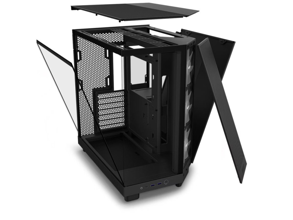 NZXT H6 Flow RGBElegantní počítačová skříň nabízí stylovou prosklenou bočnici a čelo, perforovaný panel a prvotřídní kovovou konstrukci. Osazení komponentami je lehké díky systému správy kabeláže, kabely tedy nikde zbytečně nepřekáží. Skříň je osazena třemi 120mm RGB ventilátory. Potěší také možnost rozšíření o dalších šest ventilátorů. Samozřejmostí jsou prachové filtry. Důmyslné řešení umožňuje pohodlné umístění až 360 mm dlouhého výměníku vodního chlazení na horní straně nebo až 120 mm dlouhého výměníku na zadní straně. Ve skříni je dostatek prostoru pro chladič CPU do výšky až 163 mm a grafickou kartu o délce až 365 mm. Na přední straně jsou dva USB 3.0 porty, USB-C port a kombinovaný audio port sluchátek a mikrofonu. Skříň je dodávána bez zdroje.
