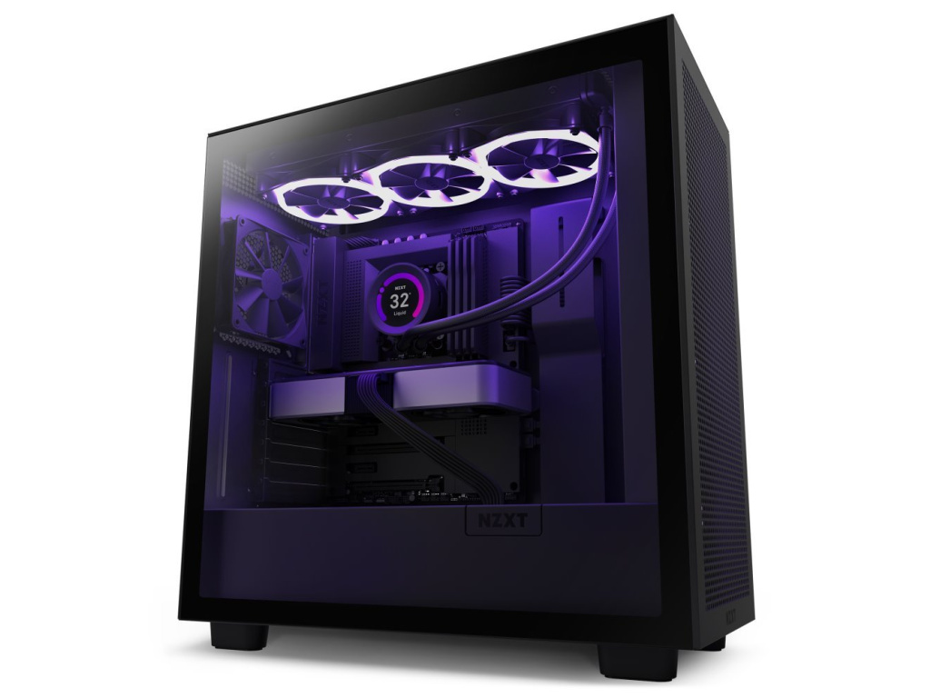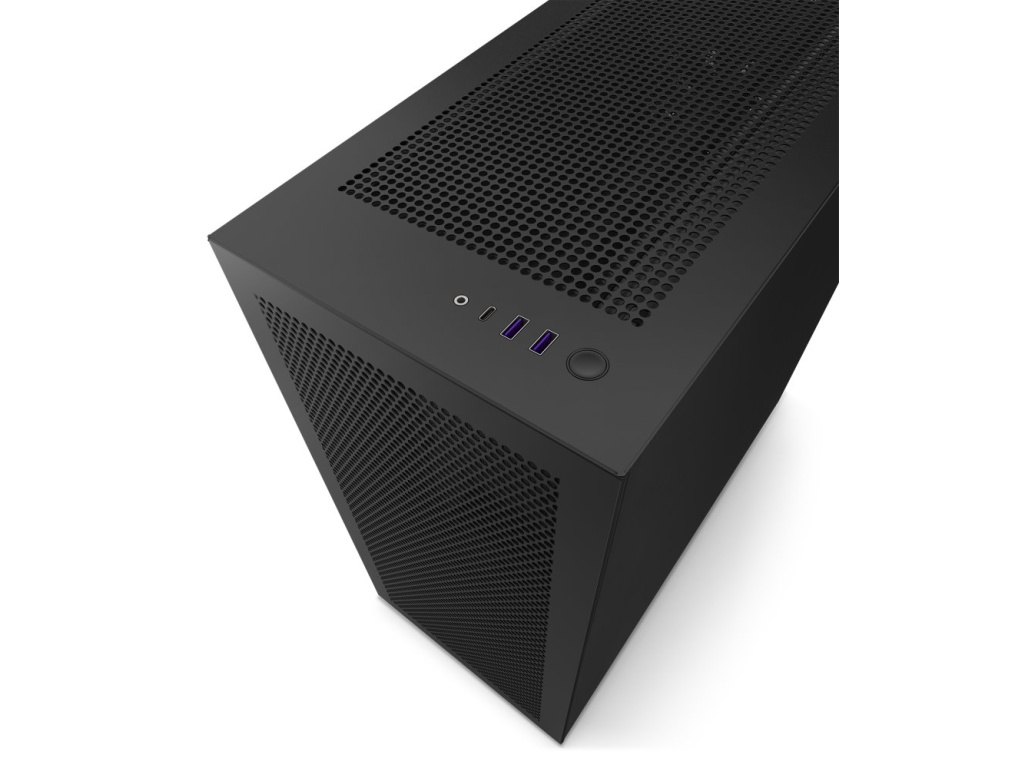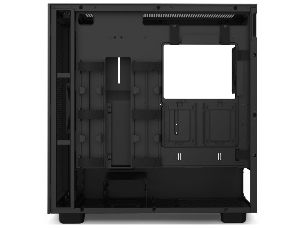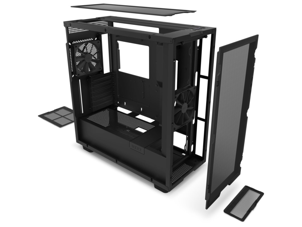 NZXT H7 FlowElegantní počítačová skříň nabízí stylovou prosklenou bočnici, perforovaný panel a prvotřídní kovovou konstrukci. Osazení komponentami je lehké díky systému správy kabeláže, kabely tedy nikde zbytečně nepřekáží. Skříň je osazena dvěma ventilátory o velikosti 120 mm. Potěší také možnost rozšíření o dalších 5 ventilátorů. Samozřejmostí jsou prachové filtry. Důmyslné řešení umožňuje pohodlné umístění až 360 mm dlouhého výměníku vodního chlazení na přední či horní straně. Ve skříni je dostatek prostoru pro chladič CPU do výšky až 185 mm a grafickou kartu o délce až 400 mm. Na vrchní straně je 2× USB 3.0 port, 1× USB-C a kombinovaný audio port (sluchátka + mikrofon). Skříň je dodávána bez zdroje.