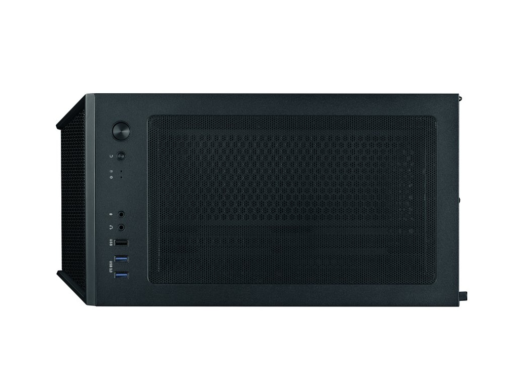 Konektory na horním panelu: 2× USB 3.0, 1× USB 2.0, 1× výstup pro sluchátka, 1× vstup mikrofonu