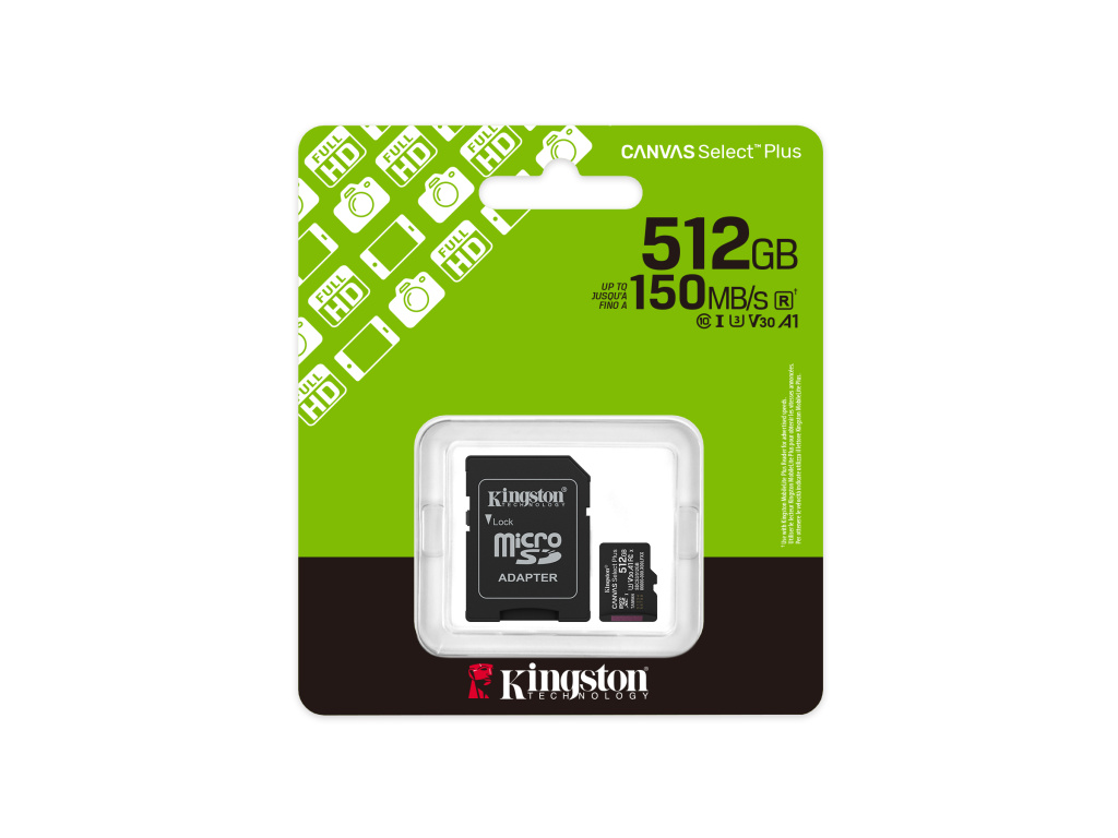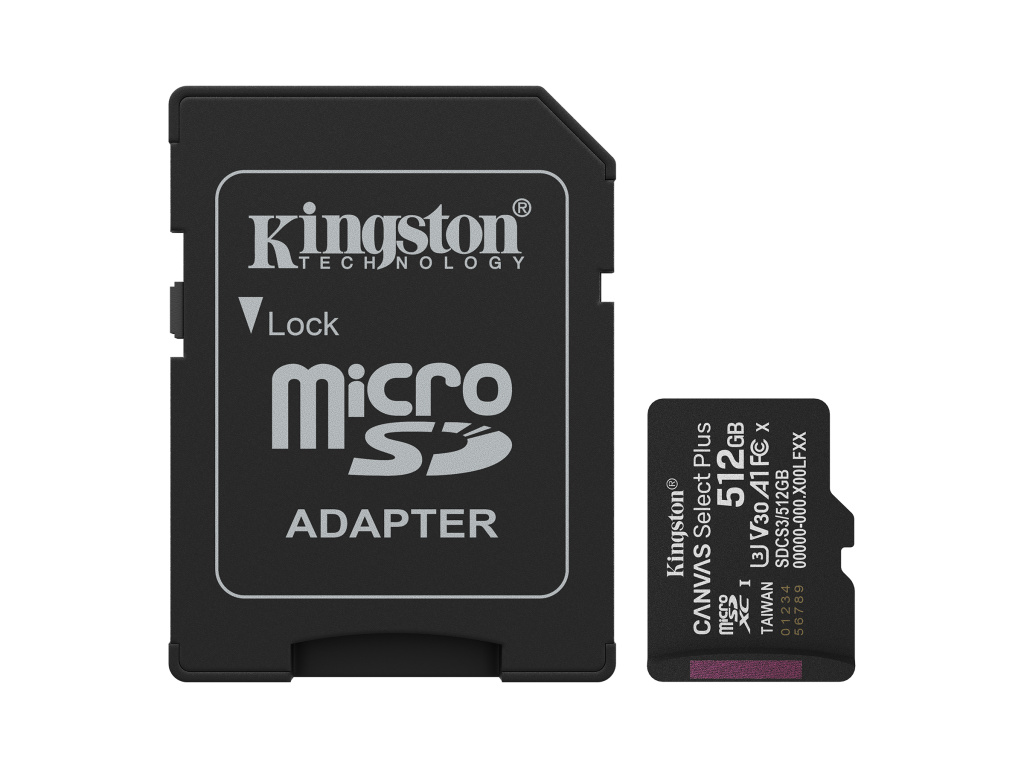Kingston Canvas Select Plus/Micro SDXC/512GB/UHS-I U3 / Class 10/+ Adaptér, SDCS3/512GB