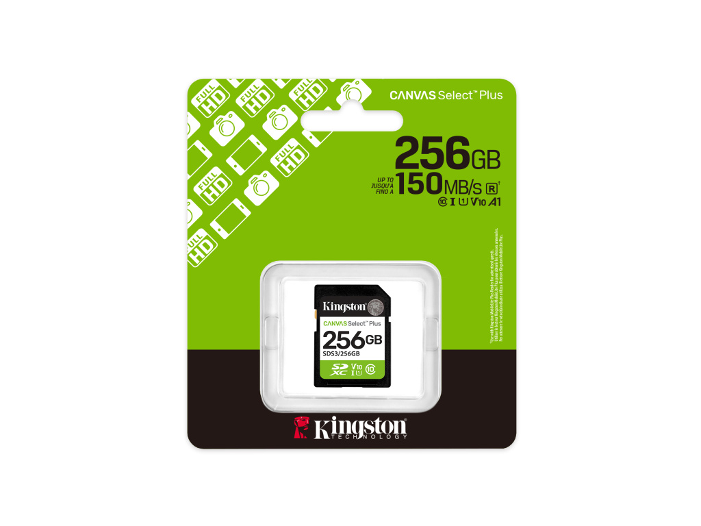 Karta SD Canvas Select Plus od společnosti Kingston poskytuje spolehlivý výkon s rychlostí až 150 MB/s, což je ideální pro fotoaparáty a nahrávání videa v rozlišení Full HD. Díky rychlostem Class 10 UHS-I zajišťuje plynulý a konzistentní výkon. Je odolná a všestranná, takže je ideální pro každodenní potřeby ukládání dat.UHS-I rychlostní třída, U1, V10, A1
