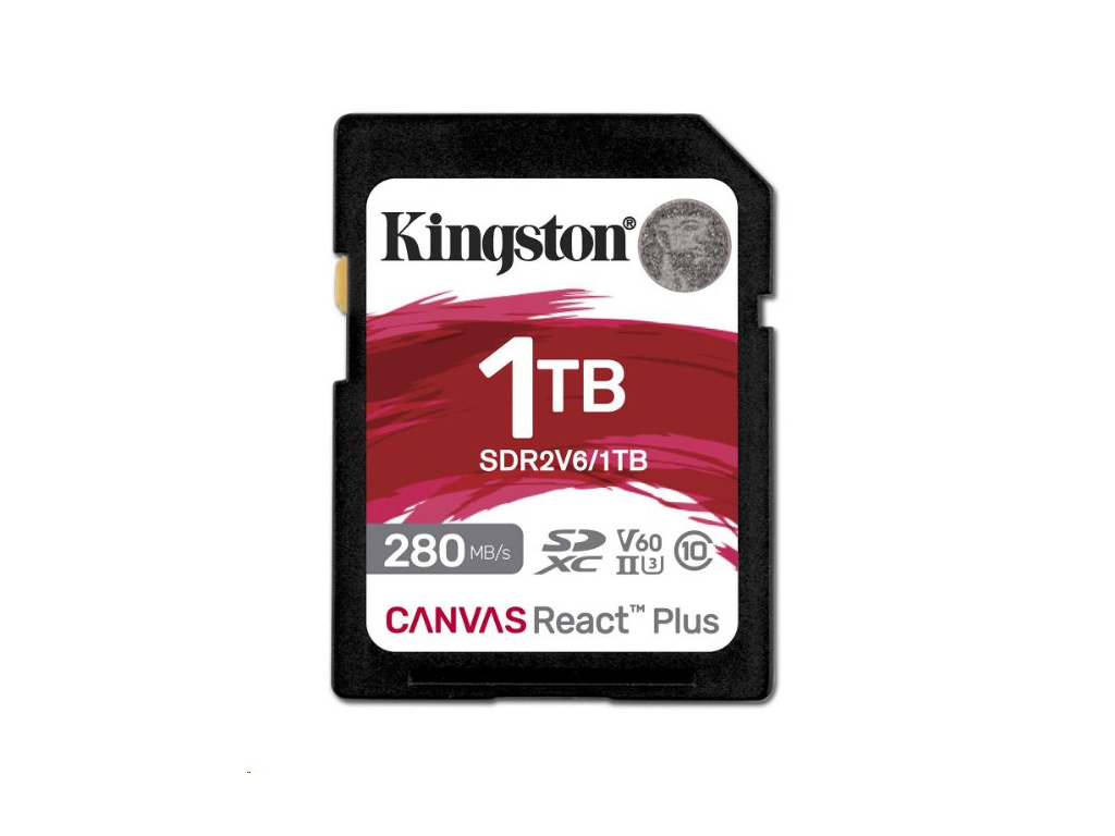 Kingston paměťová karta 1TB Canvas React Plus SDXC UHS-II 280R/150W U3 V60 for Full HD/4K, SDR2V6/1TB