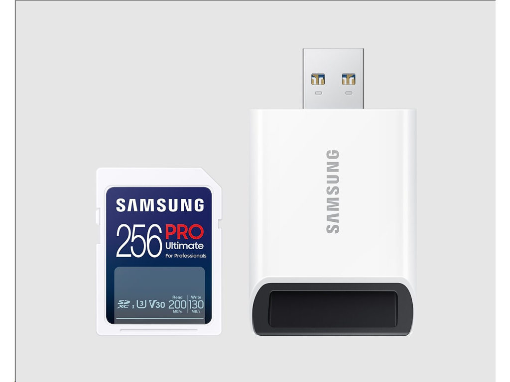 Samsung paměťová karta 256GB PRO ULTIMATE SDXC CL10 U3 V30 (č/z: až 200/130MB/s) + USB adaptér, MB-SY256SB/WW