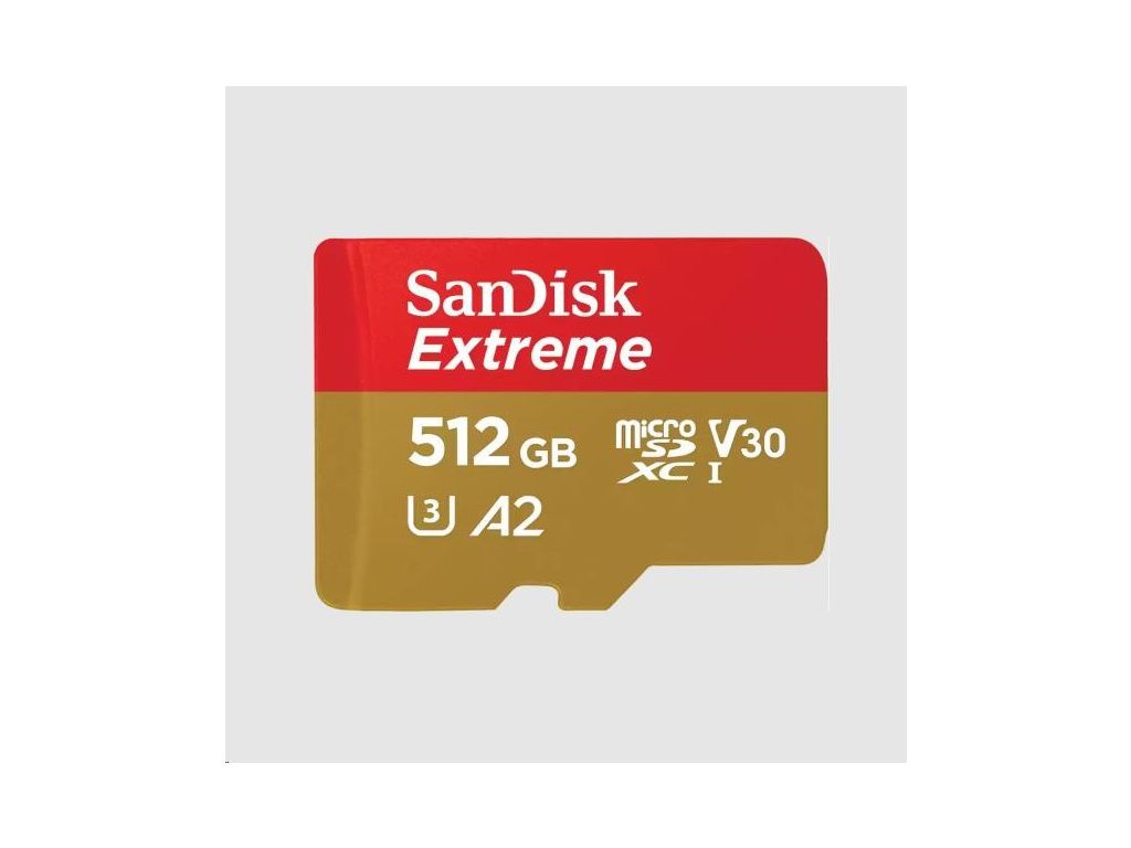 SanDisk micro SDXC karta 512GB Extreme (190 MB/s Class 10, UHS-I U3 V30) + adaptér, SDSQXAV-512G-GN6MA