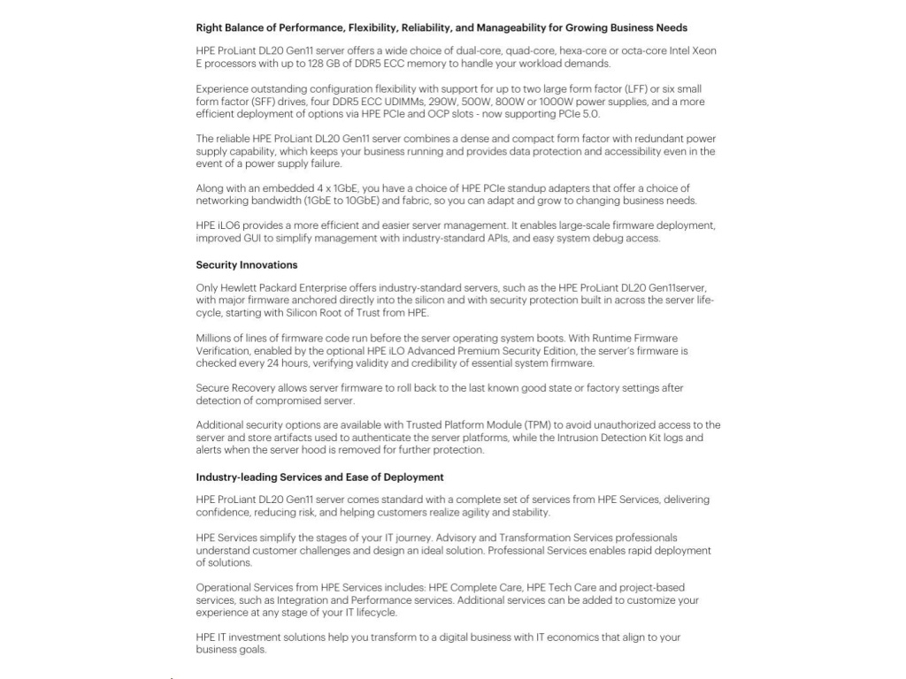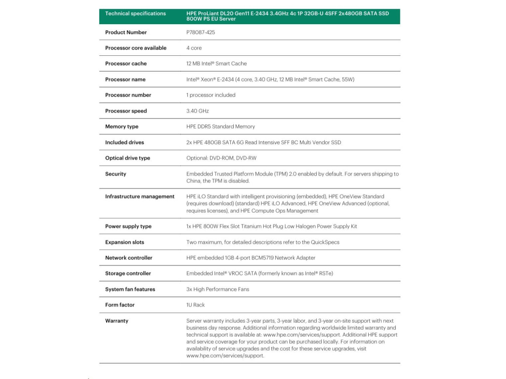 HPE PL DL20g11 E-2434 (3.4G/4C) 1x32G (P64339) 2x480G VROC 4SFF 1x800W 4x1G NBD333 Smart ChoiceEAN: 4549821626670