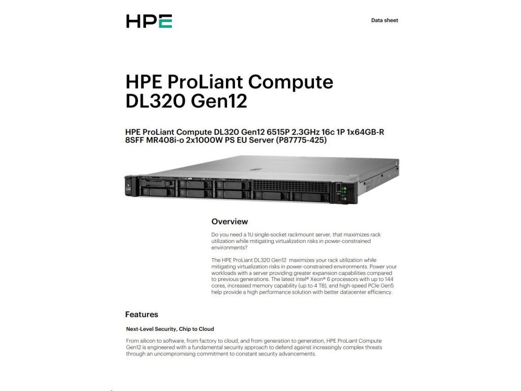 HPE PL DL320 Gen12 6505P (2.2/12C) 1x64G (P69728) 2x480G MR408i-o 8SFF 2x1000W 1GbE NBD333 Smart ChoiceEAN: 4549821660964