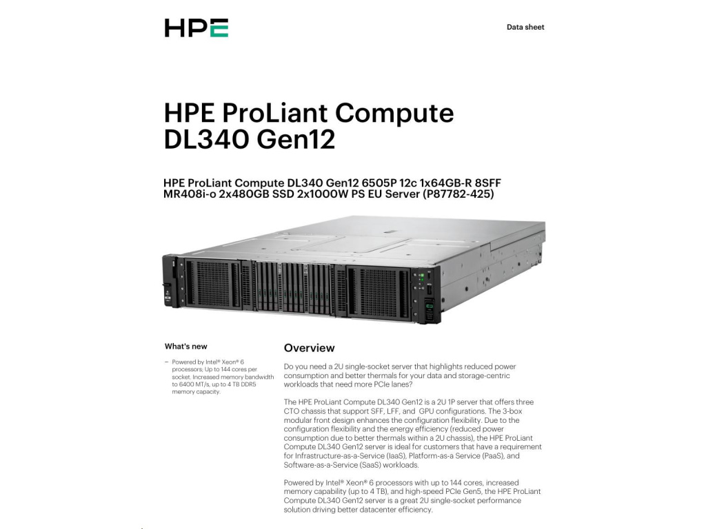 HPE PL DL320 Gen12 6505P (2.2/12C) 1x64G (P69728) 2x480G MR408i-o 8SFF 2x1000W 1GbE NBD333 Smart ChoiceEAN: 4549821661114