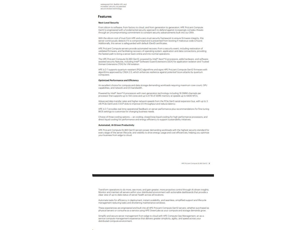 The HPE ProLiant Compute DL360 Gen12 is a compact 1U, two-socket server designed for hybrid cloud workloads. Powered by Intel Xeon 6 processors supporting up to 144 cores and up to 8 TB DDR5 memory (up to 6400 MT/s), it delivers exceptional compute performance, scalability, and high-speed data transfer.