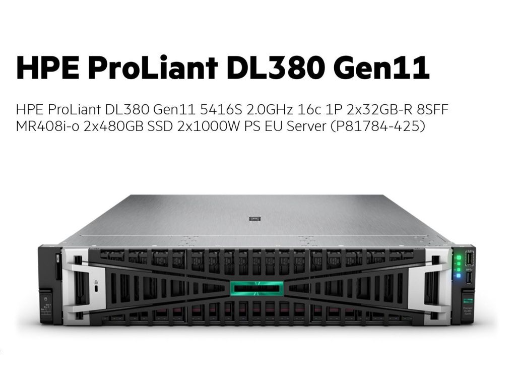 HPE PL DL380g11 5416S (2.0/16C) 2x32G (P43328) 2x480G (P40497) MR408i-o/4G 8-26SFF 2x1000W 2x10G-T 2U Smart Choice, P81784-425