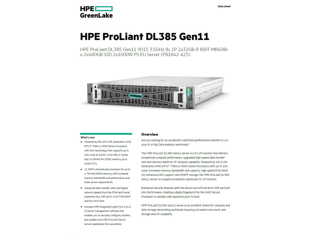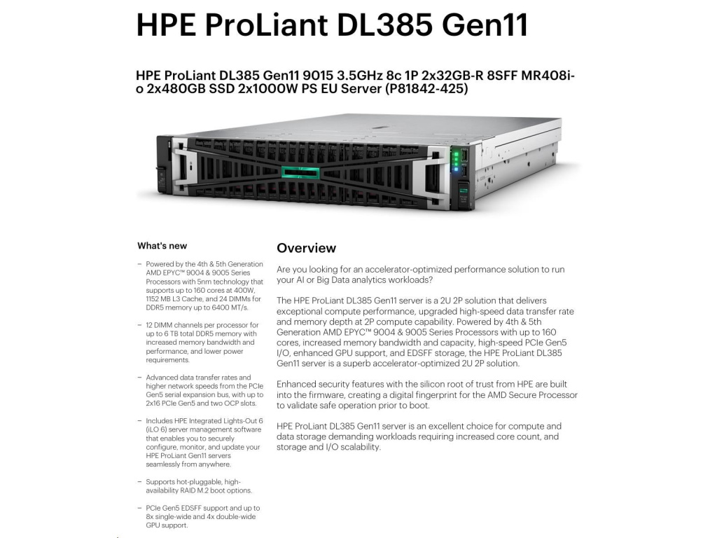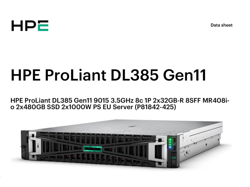 HPE PL DL385g11 AMD EPYC 9015 (3.6/8C) 2x32G (P64985) 2x480G MR408i-o 2x1000W 8SFF 2p10GT Smart Choice, P81842-425