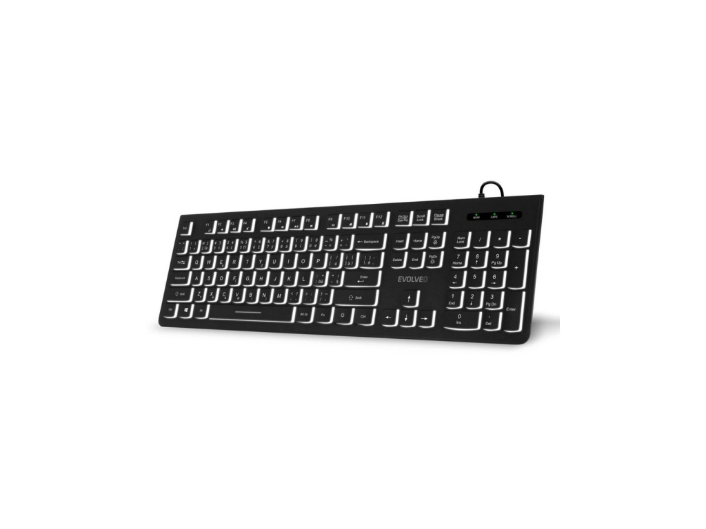 EVOLVEO K1010, klávesnice s bílým podsvícením, CZ+SK, černá, K1010-BK-CZ