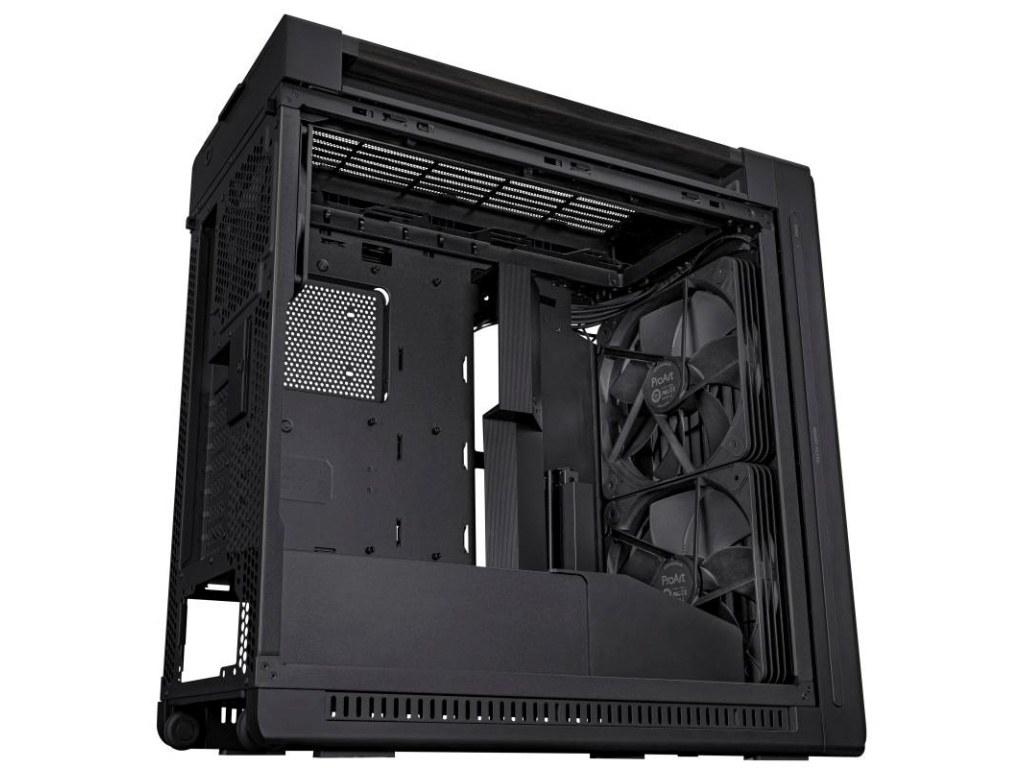 Počítačová skříň ProArt PA602 E-ATX, podpěra chladiče 420 mm, jeden 140 mm a dva 200 mm předinstalované systémové ventilátory, IR indikátor prachu na předním panelu, západka zámku napájení, montáž PCIe bez použití nářadí, podpora USB 20 Gb/s