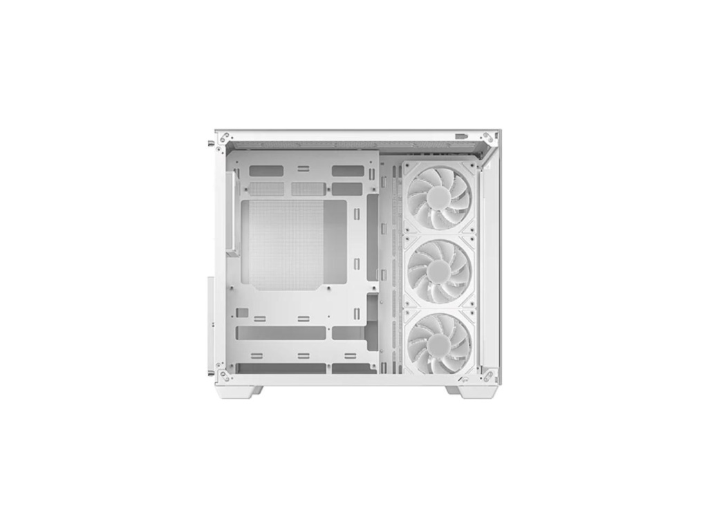 Zažijte dokonalé ztvárnění vaší sestavy díky otevřenému designu bez středového sloupku. Skříň CG530 4F WH se vyznačuje elegantní bezešvou konstrukcí, bočním panelem z tvrzeného skla a skleněným čelním panelem, které společně poskytují křišťálově čistý pohled na všechny komponenty a proměňují počítač v opravdové umělecké dílo.