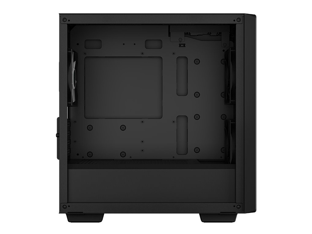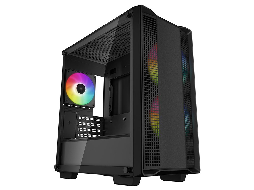 Počítačová skříň DEEPCOOL CC360 ARGB nabízí dostatek prostoru a bohatou kompatibilitu komponent. Elegantní design je doplněn průhlednou bočnicí z tvrzeného skla. Skříň disponuje trojicí předinstalovaných ventilátorů ARGB, které se postarají o stylový vzhled a stabilní chod celé sestavy i během zvýšené zátěže. PC skříň DEEPCOOL CC360 ARGB ve formátu Middle Tower je díky svému provedení dobře větraná. Přední panel s perforací podporuje efektivní proudění vzduchu a potřebnou cirkulaci. Uvnitř skříně je dostatek místa pro výkonné kapalinové chladiče AI a další podporu chladicího ventilátoru.