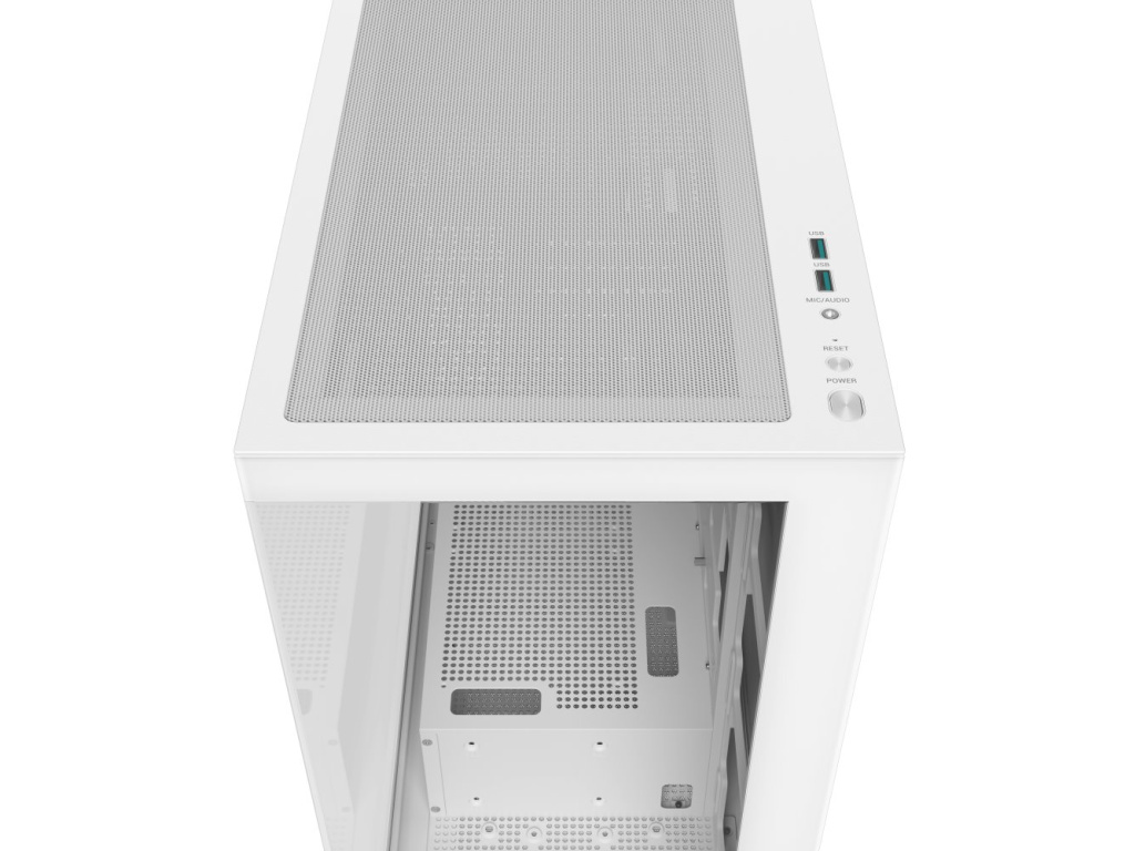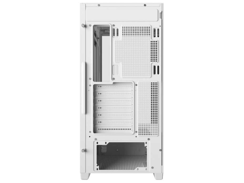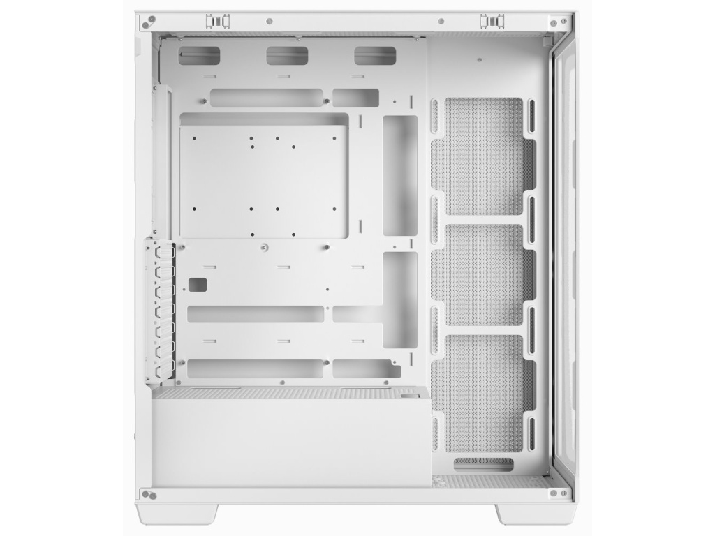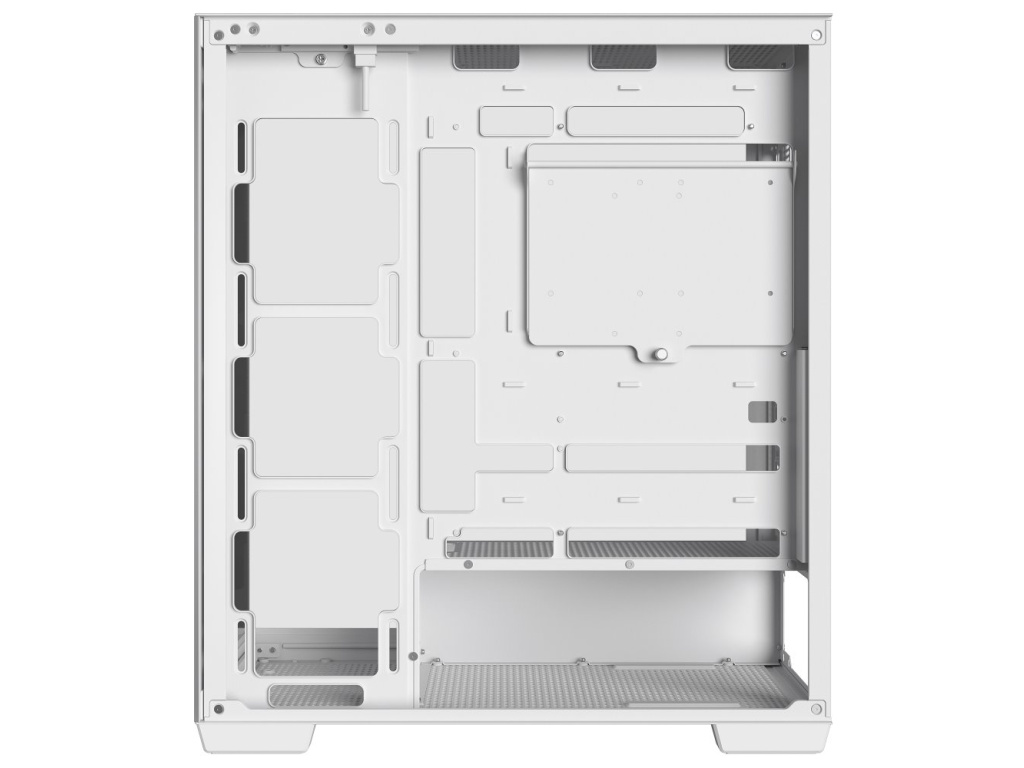 DEEPCOOL CG580Skříň formátu Middle Tower s průhlednou bočnicí a předním panelem nabízí až tři 2,5" pozice pro SSD disky a dvě 3,5" pozice pro pevné disky. Na horním panelu se nachází dva USB 3.0 porty a kombinovaný port sluchátek a mikrofonu. Skříň je dodávána bez ventilátorů, ale nabízí celkem až 10 pozic pro 120mm ventilátor, nebo 6 pozic pro 120mm ventilátor a tři pozice pro 140mm ventilátor. Důmyslné řešení umožňuje pohodlné umístění až 360 mm dlouhého výměníku vodního chlazení na horní nebo boční straně. Ve skříni je dostatek prostoru pro chladič CPU do výšky až 176 mm a grafickou kartu o délce 410 mm (v případě instalace 360mm výměníku vodního chlazení na boční straně max. 262 mm). Skříň je dodávána bez zdroje. Součástí je také sada magnetických prachových filtrů.