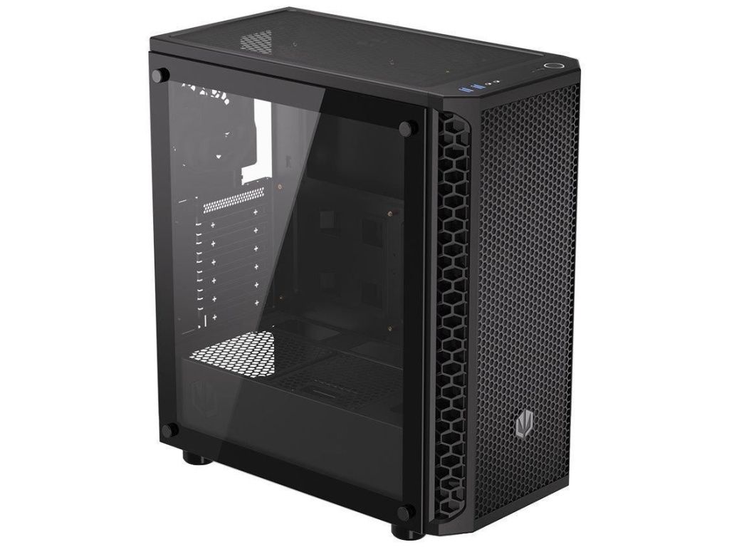 Skříň formátu Middle Tower s průhlednou bočnicí z tvrzeného skla nabízí dvě 2,5" pozice pro SSD disky a dvě 3,5" pozice pro pevné disky. Na horní části se nachází dva USB 3.0 porty, sluchátkový výstup a audio vstup pro mikrofon. Vybavena je čtyřmi 120 mm ventilátory, které spolu s perforovaným čelním panelem zajišťují dostatečné proudění vzduchu. Důmyslné řešení umožňuje pohodlné umístění až 360 mm dlouhého výměníku vodního chlazení na přední straně. Ve skříni je dostatek prostoru pro chladič CPU do výšky až 161 mm a grafickou kartu o délce až 350 mm. Dodávána je bez zdroje. Součástí je také sada prachových filtrů.