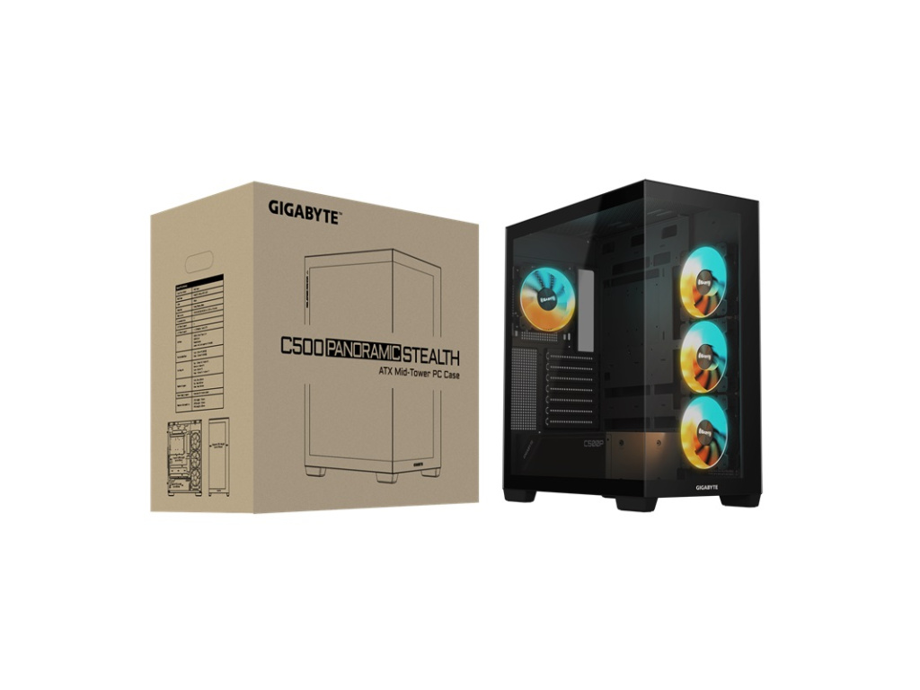 GIGABYTE C500 PANORAMIC STEALTH/Midi Tower/Transpar./Černá, GB-C500P ST