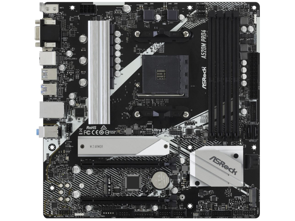 ASRock A520M PRO4 / AMD A520 / AM4 / 4x DDR4 DIMM / M.2 / VGA / HDMI / DP / USB-C / mATX, A520M PRO4