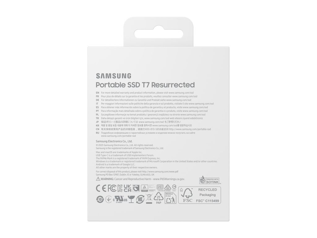 Součástí balení je kabel USB typu C na C pro větší pohodlí. T7 Resurrected zajišťuje bezproblémový přenos dat mezi systémy Windows, macOS, chytrými telefony, tablety a herními konzolemi.