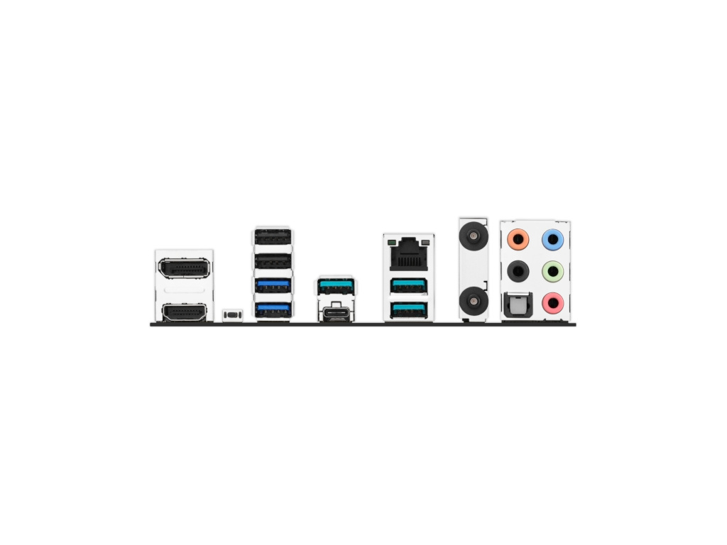 Zadní vstupy a výstupy: 4 x USB 10Gbps ports (3 x Type-A + 1 x USB Type-C®) 2 x USB 5Gbps ports (2 x Type-A) 2 x USB 2.0 ports (2 x Type-A) 1 x DisplayPort 1 x HDMITM port 1 xWi-Fi Module 1 x Realtek 2.5Gb Ethernet port 5 x Audio jacks 1 x Optical S/PDIF out port 1 x BIOS FlashBack™ button