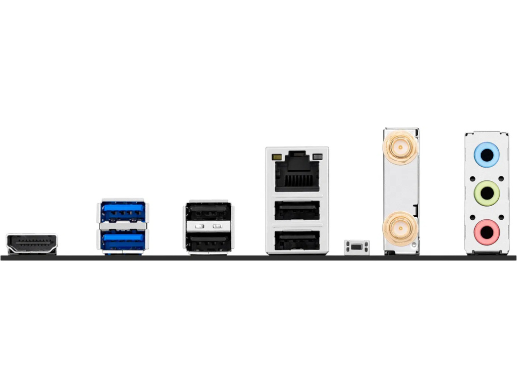 Zadní I/O porty: 2 x USB 5Gbps (Type-A) 4 x USB 2.0 (Type-A) 1 x HDMI™ port 1 x Wi-Fi module 1 x Realtek 1Gb Ethernet 3 x Audio jacks 1 x BIOS FlashBack™ button