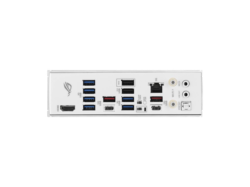 Zadní panel I/O porty: 4 x USB 10Gbps port(s) (2 x Type-A + 2 x USB Type-C®) 6 x USB 5Gbps port(s) (6 x Type-A) 2 x USB 2.0 port(s) (2 x Type-A) 1 x HDMI™ port 1 x Wi-Fi module 1 x Realtek® 5Gb Ethernet port 2 x Audio jacks 1 x Optical S/PDIF out port 1 x BIOS FlashBack™ button 1 x Clear CMOS button