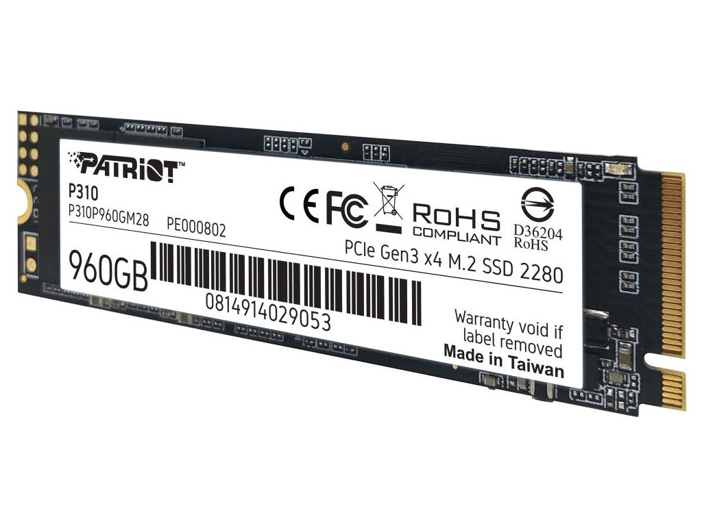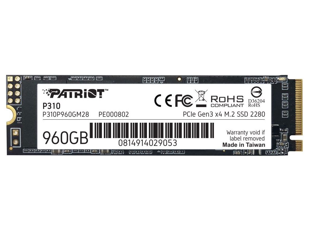 PATRIOT P310 960GB SSD / Interní / M.2 PCIe Gen3 x4 NVMe 1.3 / 2280, P310P960GM28