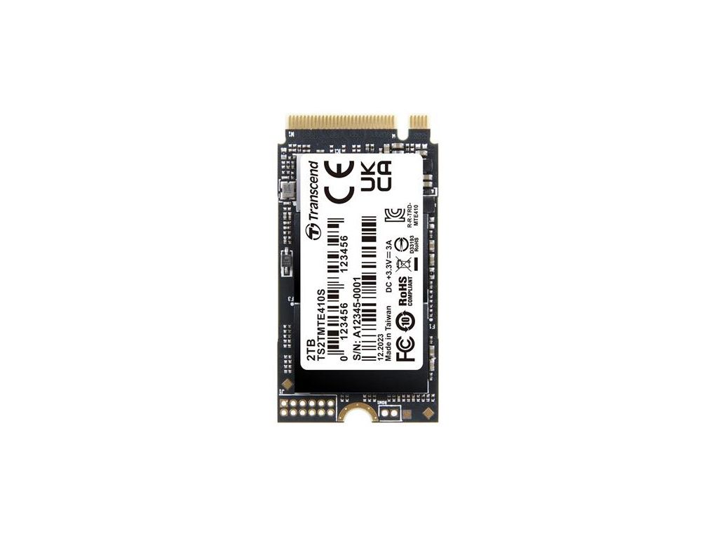 Transcend MTE410S 2TB SSD disk M.2 2242, NVMe PCIe Gen4 x4 5000MB/s R 4300MB/s W Transcend's PCIe Gen 4x4 M.2 SSD MTE410S has a compact form factor and high-quality 3D NAND flash, making it easy to upgrade Ultrabooks, lightweight notebooks, tablets, and handheld gaming PCs. It is designed with multiple firmware optimization technologies, such as SLC caching and the LDPC ECC mechanism, which help to improve both storage reliability and extend the drive lifespan. The MTE410S is a fantastic choice for boosting the performance of modern work platforms. Featuring a high-speed PCIe Gen 4x4 interface, Transcend's MTE410S SSD delivers lightning-fast transfer speeds. Transcend's MTE410S offers optimal peak performance without consuming minimal power in your ultra-thin devices. At just 42mm in length, Transcend's MTE410S SSD is ideal for Ultrabooks, lightweight notebooks, tablets, and handheld gaming PCs. With a single-sided design, Transcend's MTE410S SSD gives your device a much-needed boost while being space-efficient! Appearance Dimensions Single-sided 42 mm x 22 mm x 2.23 mm (1.65" x 0.87" x 0.09") Weight 5 g (0.18 oz) Type M.2 2242 Interface Bus Interface NVMe PCIe Gen4 x4 Storage Flash Type 3D NAND flash Capacity 2 TB Operating Environment Operating Temperature 0°C (32°F) ~ 70°C (158°F) Operating Voltage 3.3V±5% Performance Sequential Read/Write (CrystalDiskMark) Up to 5,000/4,300 MB/s 4K Random Read/Write (IOmeter) Up to 570,000/700,000 IOPS Terabytes Written (TBW) 1200 TBW Mean Time Between Failures (MTBF) 2,000,000 hour(s) Drive Writes Per Day (DWPD) 0.33 (5 yrs) Note Speed may vary due to host hardware, software, usage, and storage capacity. The workload used to rate DWPD may be different from your actual workload, which may vary due to host hardware, software, usage, and storage capacity. Terabytes Written (TBW) expresses the endurance under the highest capacity. Some motherboards only provide PCIe x2 connections for the M.2 slot, creating a bottleneck on even the fastest drives. Warranty Certificate CE/UKCA/FCC/KC/RCM Warranty Five-year Limited Warranty Warranty Policy Please click here for more information about the Transcend Warranty Policy. Warranty does not apply when SSD Scope's lifetime indicator displays 0% within the warranty coverage. System Requirement Operating System Microsoft Windows 7 or later Linux Kernel 2.6.31 or later Note Systems for use with the PCIe M.2 SSD must have an M.2 connector with only an M key. B-key connectors are not compatible. Improper insertion may lead to damage. Please click here for more information. Technology S.M.A.R.T. Technology S.M.A.R.T. Yes Advanced Garbage Collection Yes RAID Engine Yes LDPC Coding Yes DRAM Cache NoEAN: 0760557865339