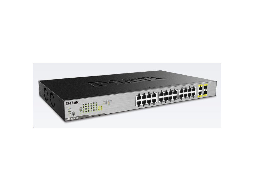 D-Link DGS-1026MP 26-Port Gigabit PoE Switch, 24x gigabit PoE RJ45, 2x gigabit RJ45/SFP, PoE budget 370W, DGS-1026MP